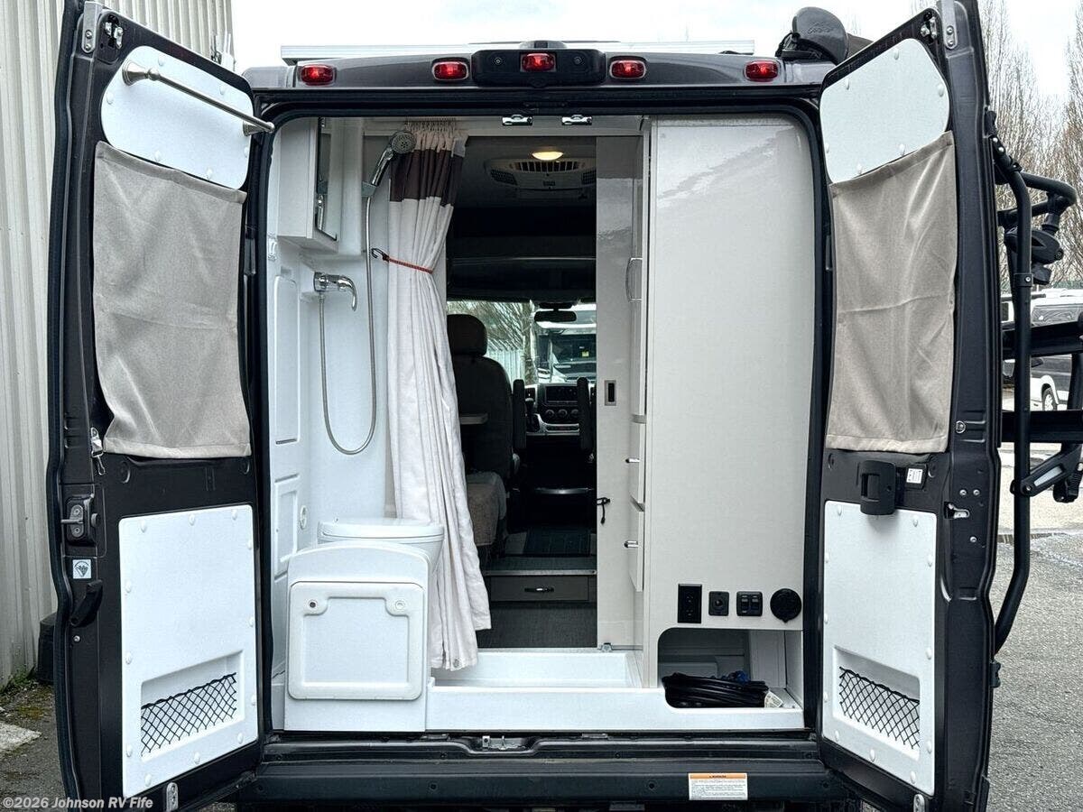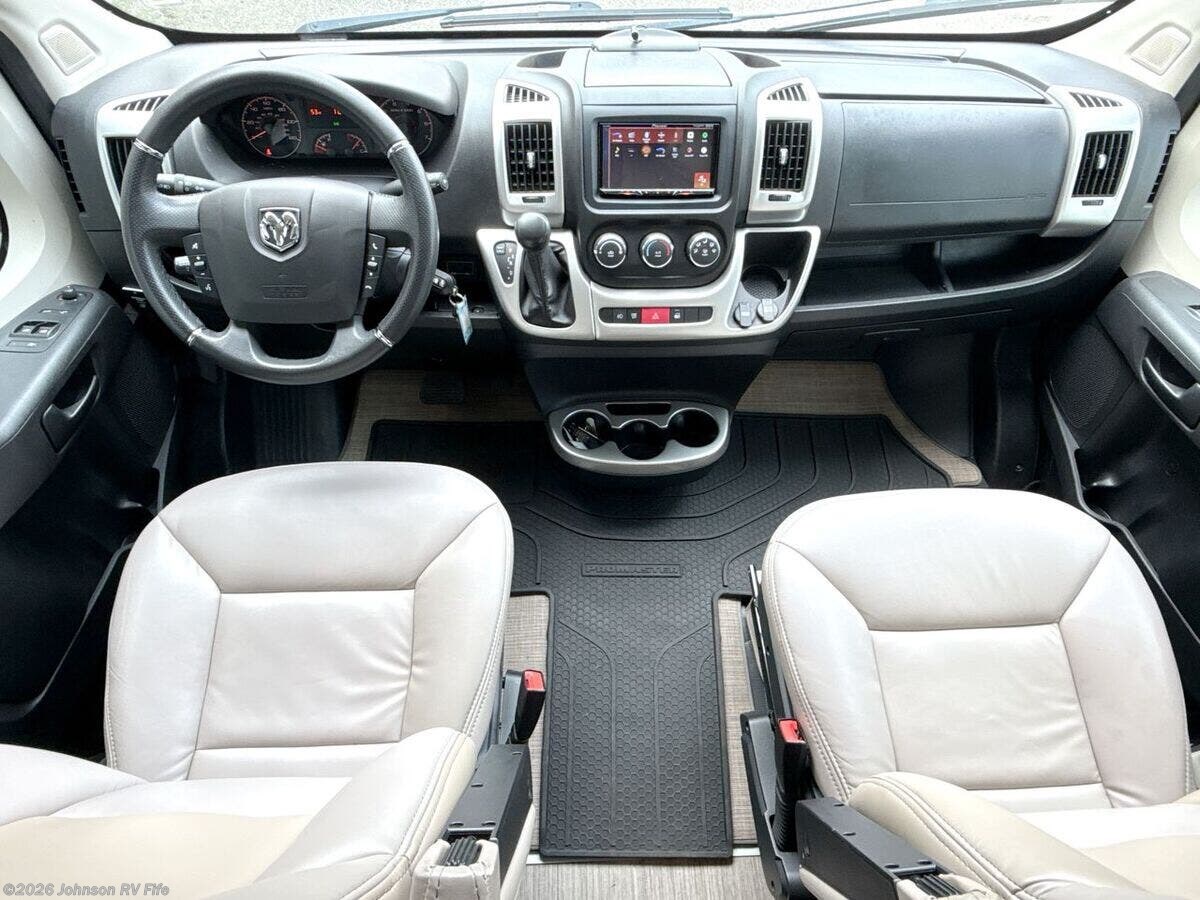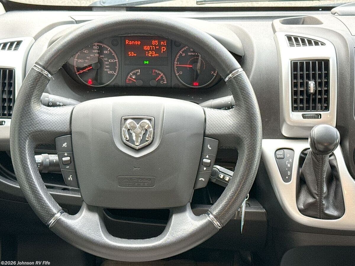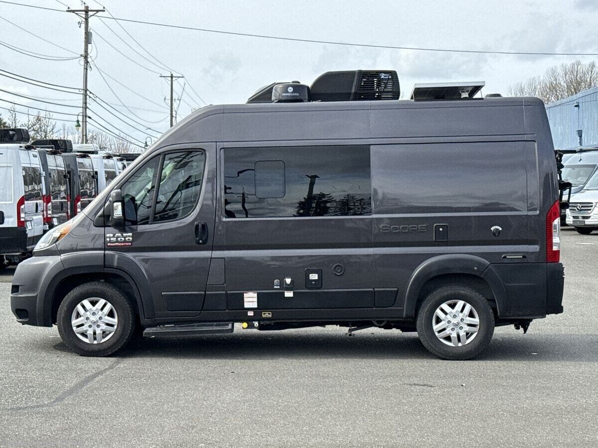 The 2022 Thor Motor Coach Scope is a versatile and compact RV that's perfect for both adventurous road trips and comfortable camping experiences. With just 16,877 miles on its odometer, this Class B motorhome is ready for new adventures. Built on the robust Ram ProMaster 1500 XT Chassis, this Scope is powered by a 3.6L V6 gas engine that delivers 280 horsepower and 260 lb-ft of torque. This powerful engine ensures you have the strength and durability needed for your travels. Its exterior features aluminum wheels and a 3500-pound hitch with a 4-pin connector, making it easy to bring along additional equipment or a small trailer. Plus, the rear door Thule bike rack is perfect for cycling enthusiasts looking to explore new destinations. **Cab Features:** - Cab side steps for easier access - Keyless entry system for convenience - Power door locks and windows - Windshield privacy shades - Leatherette swivel captains chairs - Driver and passenger airbags for safety - Power heated side-mirrors - 7-inch dash touchscreen with back-up monitor - Telescoping leather steering wheel with audio controls - Connectivity with Apple CarPlay and Android Auto - Cruise control for comfortable long-distance driving **Living Spaces:** - Power awning to enjoy outdoors in comfort - Easy entry with side steps and sliding side door - Sliding entry door screen to keep insects out - Vinyl flooring for easy cleaning - Soft-touch vinyl ceiling and LED interior lighting - Tinted opening side windows with premium privacy roller shades - European-style cabinetry with ball-bearing drawer guides **Dining and Kitchen:** - Removable table for flexible dining arrangements - Pressed countertops with an undermount stainless steel sink - Sink cover for added workspace - Refrigerator and gas cooktop with a glass cover - Over-cooktop task lighting and microwave oven - 12V kitchen vent switch and outdoor LP connection for grilling **Electronics:** - Systems center with Rapid Camp+ Multiplex control - HDMI cable and USB ports for electronics - Winegard Connect 2.0 with 4G WiFi and digital TV antenna - Satellite-ready and TV preparation for entertainment options - Articulating tablet holder for convenient device use **Sleeping and Bath:** - Pullout bed for a cozy sleeping experience - Wet bath design with pocket doors, shower, and cassette toilet for onboard convenience **Mechanical Features:** - Battery disconnect switch - 190W solar panel and controller for off-grid capabilities - Two Group 31 AGM batteries and Onan RV QG 2800 gas generator - Automatic transfer switch and 1000-watt inverter - 30-amp service cord, furnace, Truma Combi Eco Hydronic system - Roof AC for climate control - Outdoor sprayer for easy cleaning or rinsing This Thor Scope is an ideal companion for anyone seeking both comfort and capability on the road. Whether you're hitting the open road for a long trip or a weekend getaway, this RV provides the amenities and performance to make every journey enjoyable. ??