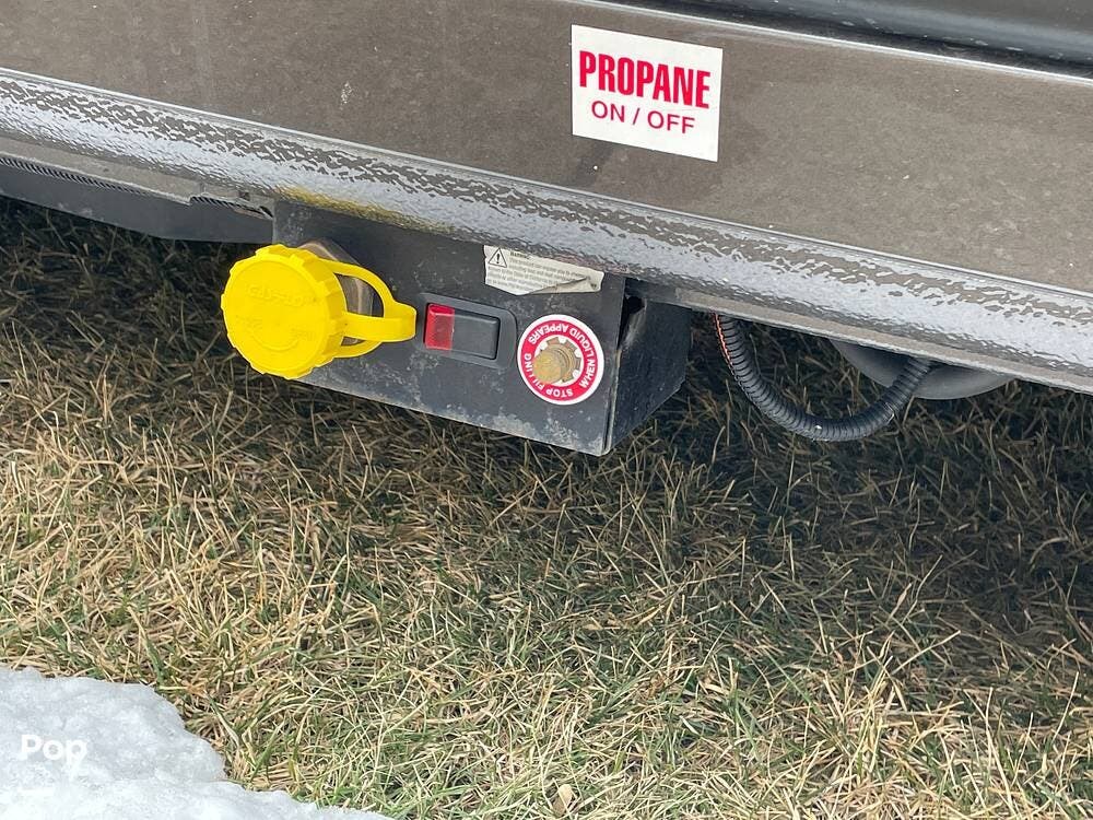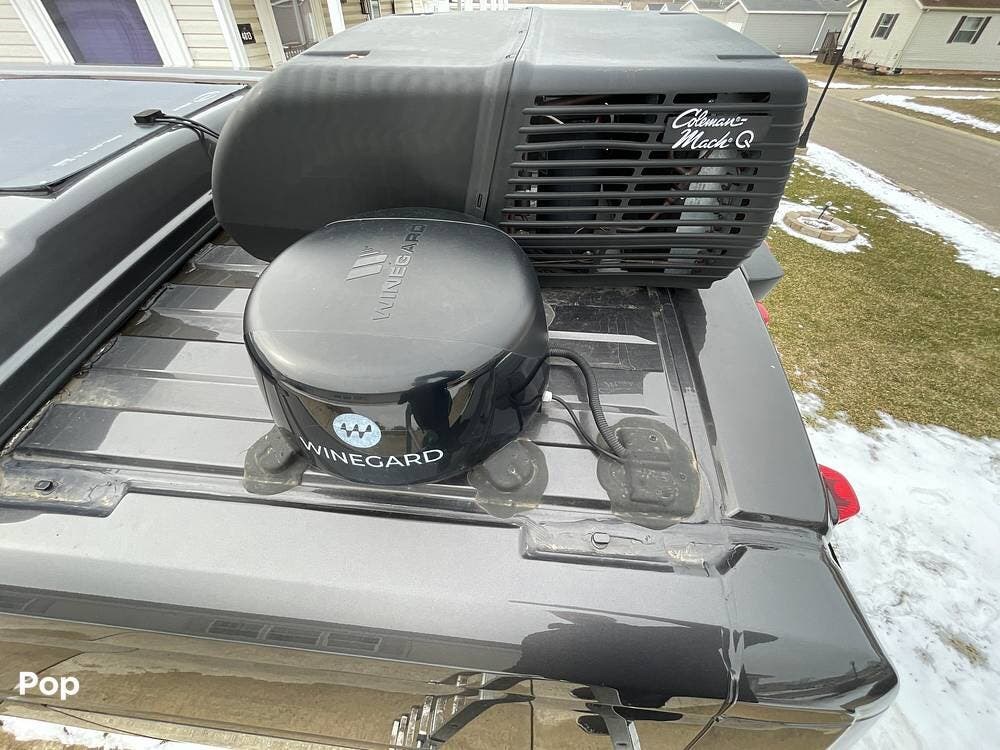 The lightly enjoyed 2022 Sequence 20J is ready to provide you with the comfort and entertainment you need while traveling. The Sequence 20J sleeps 4 with the SkyBunk and sofa that transforms to a bed, a large patio awning, TV, solar charging, and a bicycle rack.