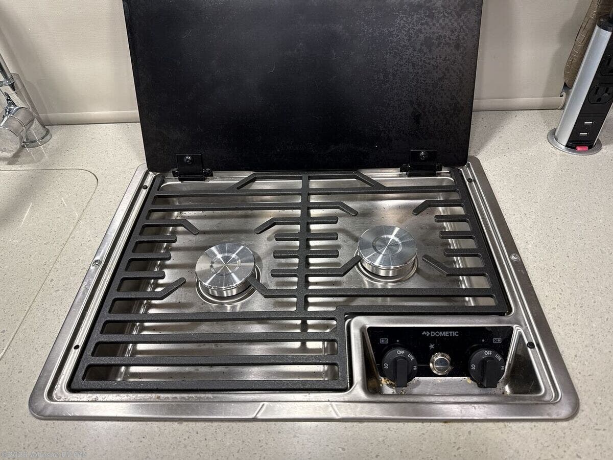 The 2022 Thor Motor Coach Sequence, a versatile Class B RV, offers a blend of comfort and functionality ideal for adventure-loving individuals or families. This used model boasts an odometer reading of 18,947 miles, suggesting it has plenty of journeys left to embark upon. Engineered for performance, it is built on the Ram ProMaster 3500 Window Van Chassis and drives with a robust 3.6L Pentastar V6 Gas Engine producing 280 horsepower and 260 lb-ft of torque. Additional driving features include aluminum wheels, a 3500-pound hitch with a 4-pin plug, side steps for easy entry, and a reliable keyless entry system. The cab is equipped with power windows and door locks, leatherette swivel captain's chairs, driver and passenger airbags, and emergency engine start facilities for optimal safety and comfort. Inside, the Thor Sequence is designed to make traveling enjoyable with a focus on comfortable living spaces. - **Cab Features:** - Deluxe heated side mirrors - Telescoping leather steering wheel with audio controls - 7-inch touchscreen dash radio featuring a backup monitor, Apple CarPlay, and Android Auto for seamless connectivity - Cruise control for long-haul comfort - Privacy ensured by a 3-piece windshield privacy shade - **Living Spaces:** - Thule lateral arm power awning with integrated LED lighting - Soft-touch vinyl ceiling and residential vinyl flooring for a homely feel - Welformed interior wall panels with opening side windows - Privacy roller shades and a skylight for natural light - Stylish TecnoForm Euro-style cabinets - **Dining and Galley Area:** - Booth dinette with seatbelts for safety - Collapsible dinette table and removable options - Durable solid surface countertop with a stainless steel sink - Well-equipped with a refrigerator, 2-burner cooktop with glass cover, task lighting, and convection microwave - **Electronics & Connectivity:** - Systems center with RapidCamp+ multiplex system for easy control access - Cable TV ready and HD/DSS satellite ready capabilities with a Winegard ConnecT 2.0 antenna - Digital TV, WiFi, and 4G capabilities - 24-inch TV complemented by HDMI cables and USB charging ports - **Sleeping Accommodations:** - Expanding sleeper sofa and retractable roof top sky bunk options for optimum flexibility - Twin beds with Froli sleep system for added comfort - **Bathroom Amenities:** - Fully enclosed wet bath with pocket doors for privacy - Equipped with a deluxe shower curtain, ShowerMiser hot water system, and a foot flush toilet - **Mechanicals:** - Comprehensive systems including outside LP connection, battery disconnect switch, 190w solar panel, two 100-Ah lithium batteries, and 30-amp service cord - Features an underhood generator alternator, generator transfer switch, and a 3000w inverter - Equipped with roof AC, Truma Combi Eco Hydronics, and holding tank heat pads - **Coach Build:** - Incorporates Thule roof rack and ladder along with a Thule rear door bike rack - Sliding screen door to enjoy the breeze while keeping pests out Ready for any adventure you can imagine, the 2022 Thor Motor Coach Sequence offers excellent build quality and an array of features ensuring your road trips are both luxurious and memorable. With modern conveniences and a compact, maneuverable design, this RV is tailored for those seeking comfort on their travels.