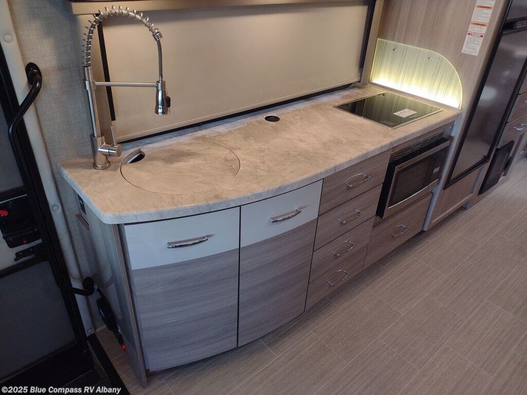 You will be well on your way to unforgettable journeys when you purchase the Thor Motor Coach Tiburon Sprinter Class C diesel motorhome and add it to your line-up! What makes the Tiburon Sprinter so special are the elegant and stunning interiors combined with the eye-catching exterior and powerful Mercedes-Benz Sprinter chassis with 3.0L V6 188HP engine. You will stay safe as you travel because the Mercedes-Benz safety package includes active braking assist, attention assist, active lane keeping assist, a wet wiper system, and a distance regulator distronic plus. As you tackle each adventure, you'll enjoy the cockpit features that allow you to enjoy traveling, like the Mercedes-Benz multimedia dash radio with Bluetooth®, navigation, and SiriusXM® and the rearview mirror with back-up system. And don't overlook the electrical and plumbing features! You will be impressed by the wireless phone charger, Winegard® ConnecT™ 2.0 Wi-Fi/4G/TV antenna, tankless water heater, and 100W solar charging system with power controller.