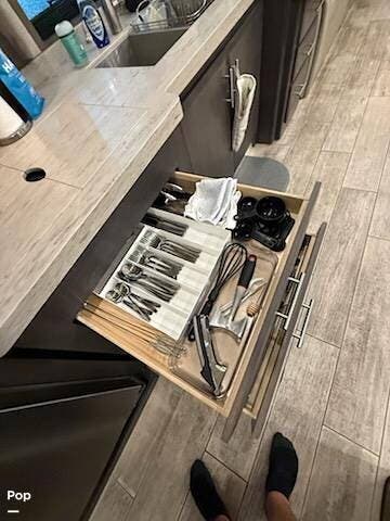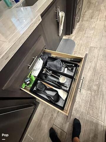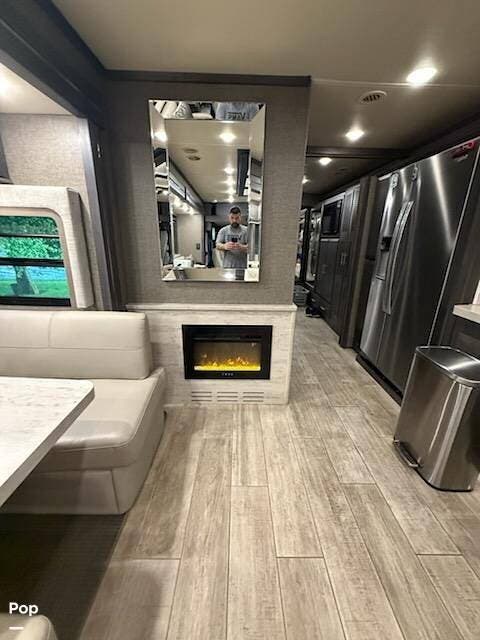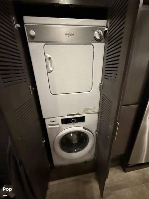 Inside, you'll find every amenity that transforms life on the road into a true residential experience. The full-size stackable washer and dryer take the hassle out of laundry days, so you can spend more time enjoying your trip and less time doing chores.