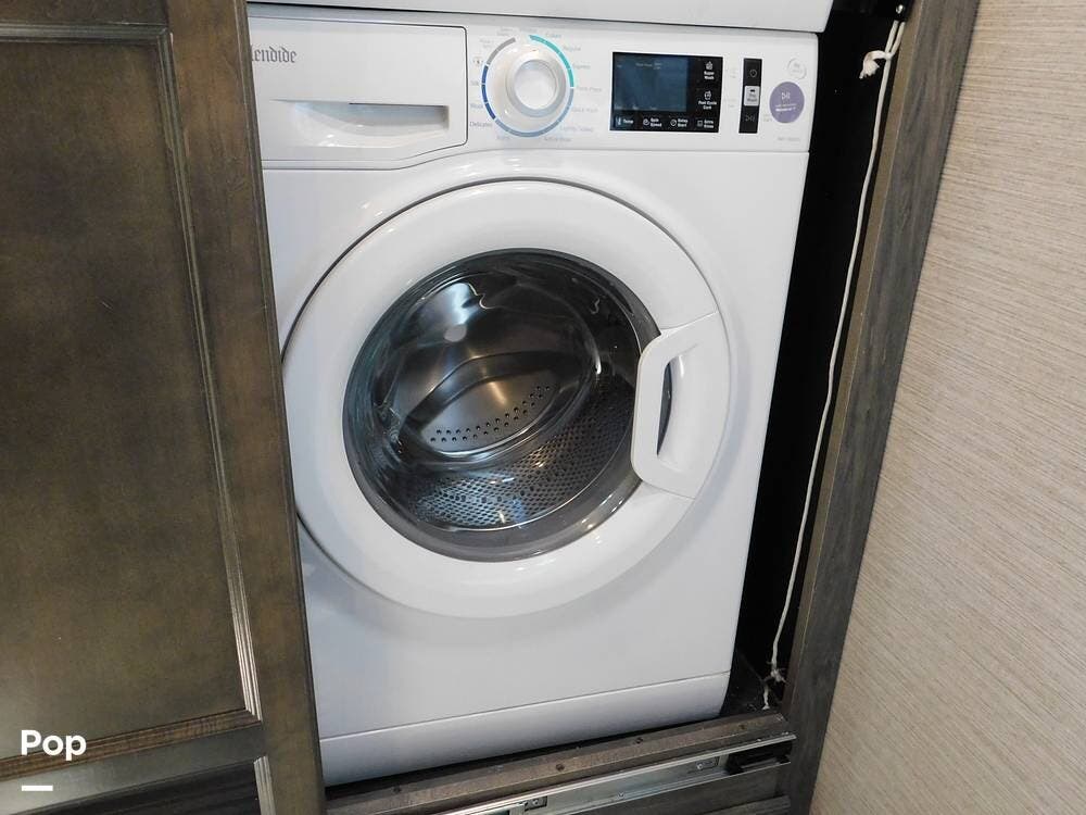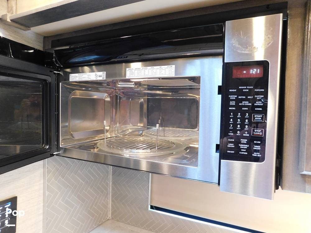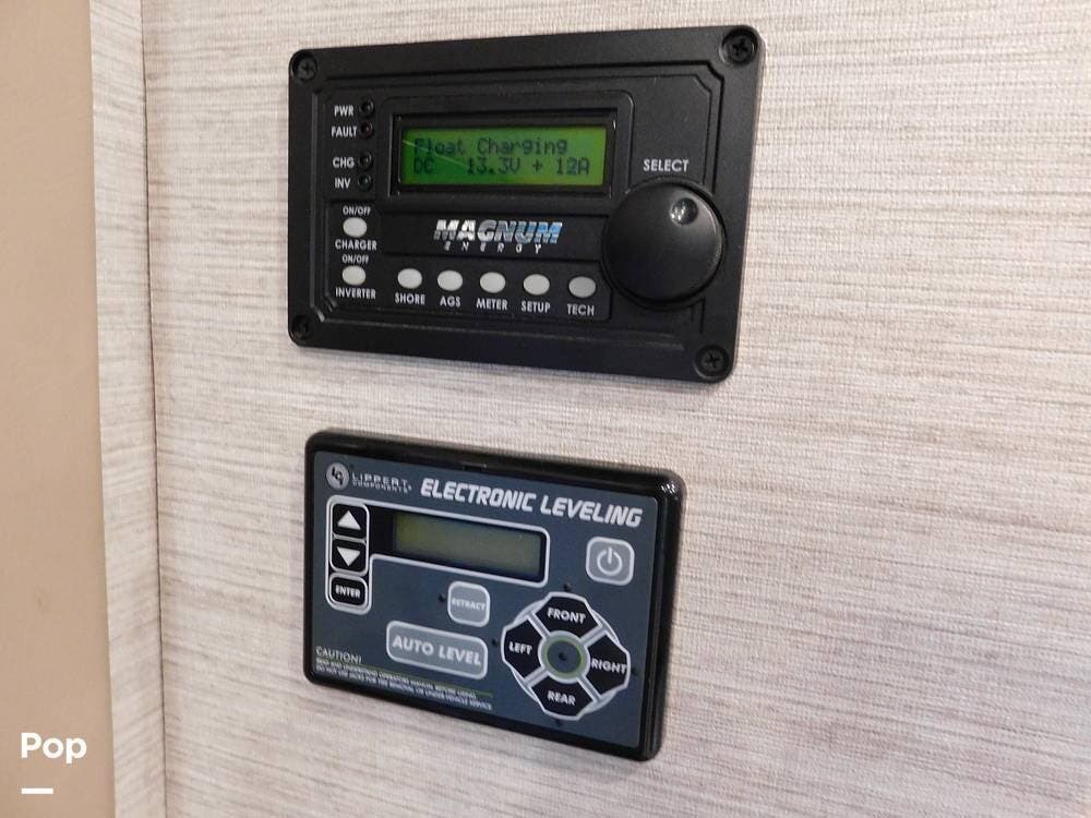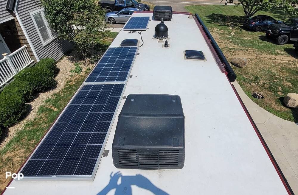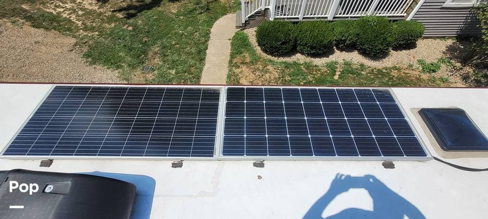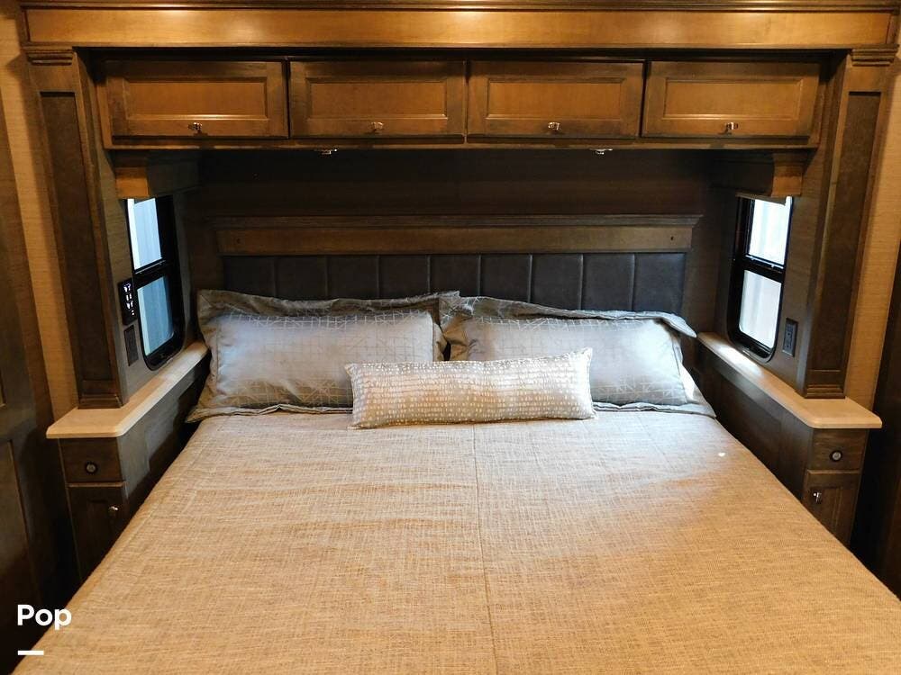 Other notable features of the Allegro Bay 38BB include advanced climate control systems, solar power with 3 solar panels, generous exterior storage compartments, and high-tech safety features. The motorhome is equipped with automatic leveling jacks, a powerful generator, and 3 slide-outs that expand the living space and bedroom when parked.