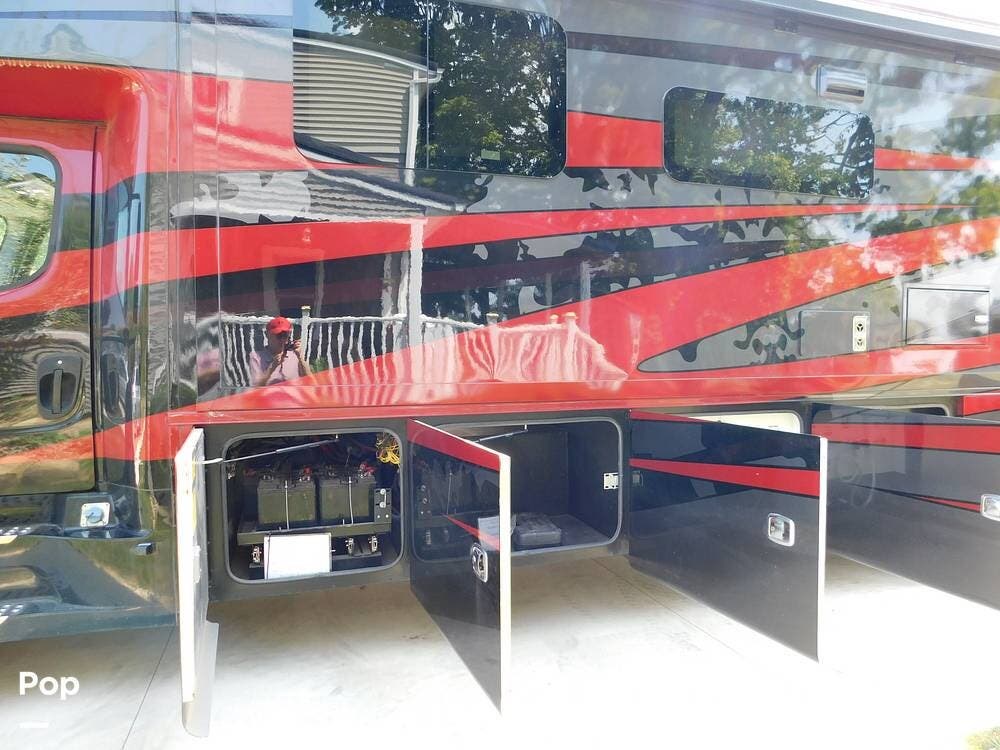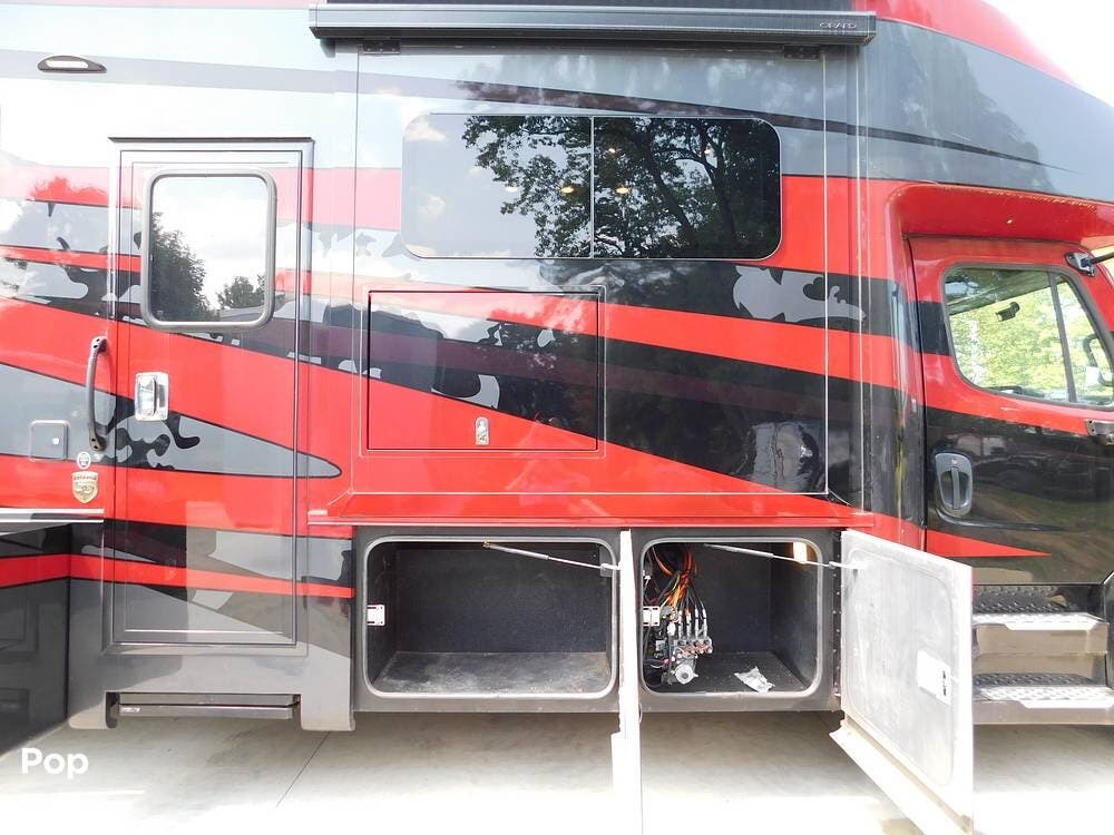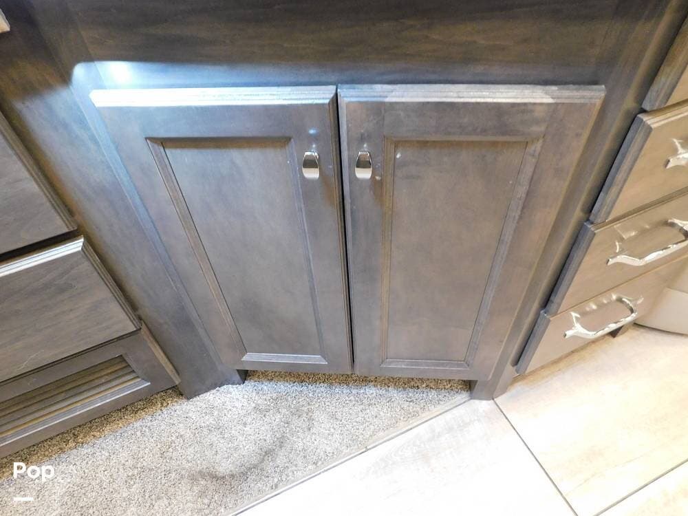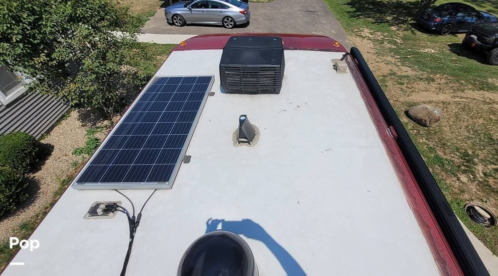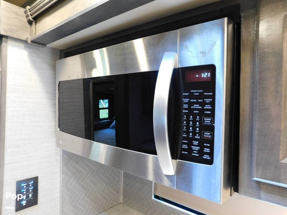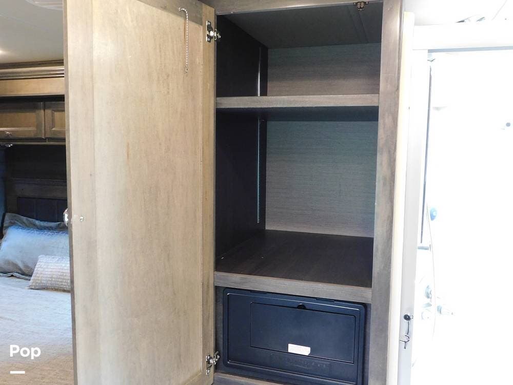 Other notable features of the Allegro Bay 38BB include advanced climate control systems, solar power with 3 solar panels, generous exterior storage compartments, and high-tech safety features. The motorhome is equipped with automatic leveling jacks, a powerful generator, and 3 slide-outs that expand the living space and bedroom when parked.