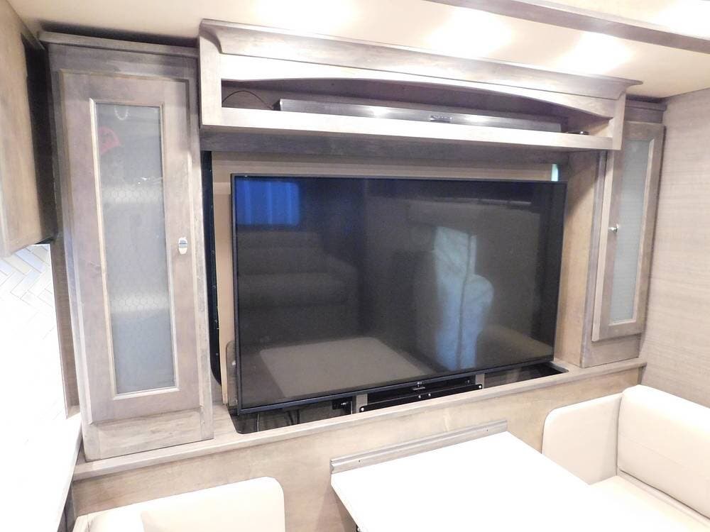 For outside comfort, it features a Girard patio awning with LED lighting and an exterior TV with a sound bar.