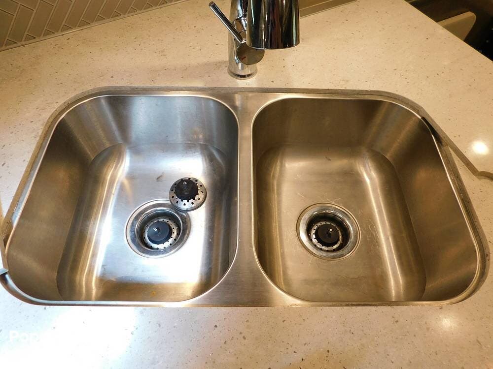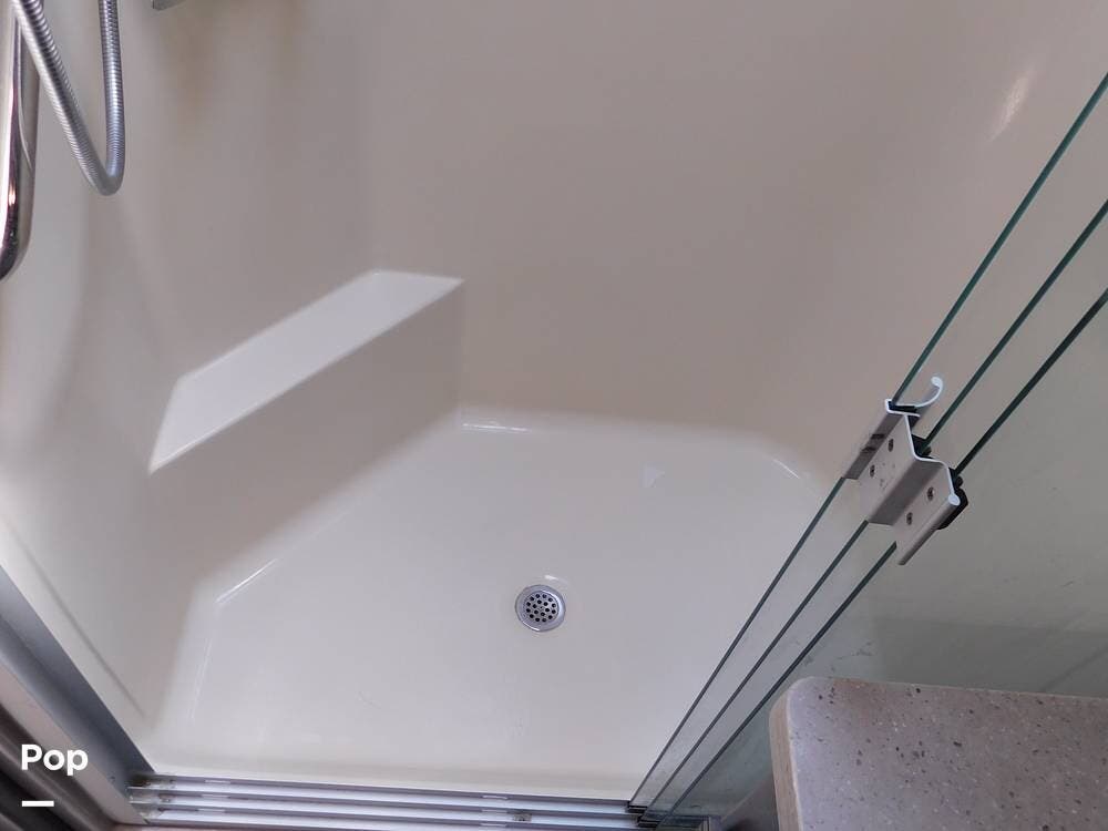 Sleeping accommodations in the 38BB are generous, with a rear bedroom that boasts a king-size bed, abundant wardrobe space, and another smart TV for private entertainment. T