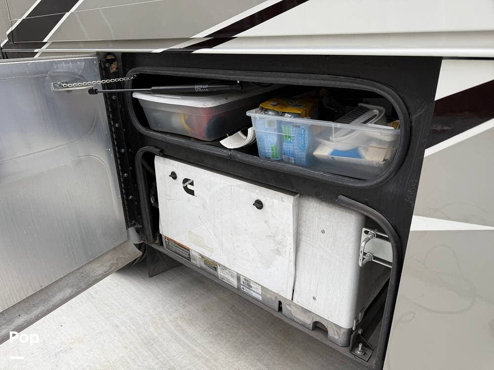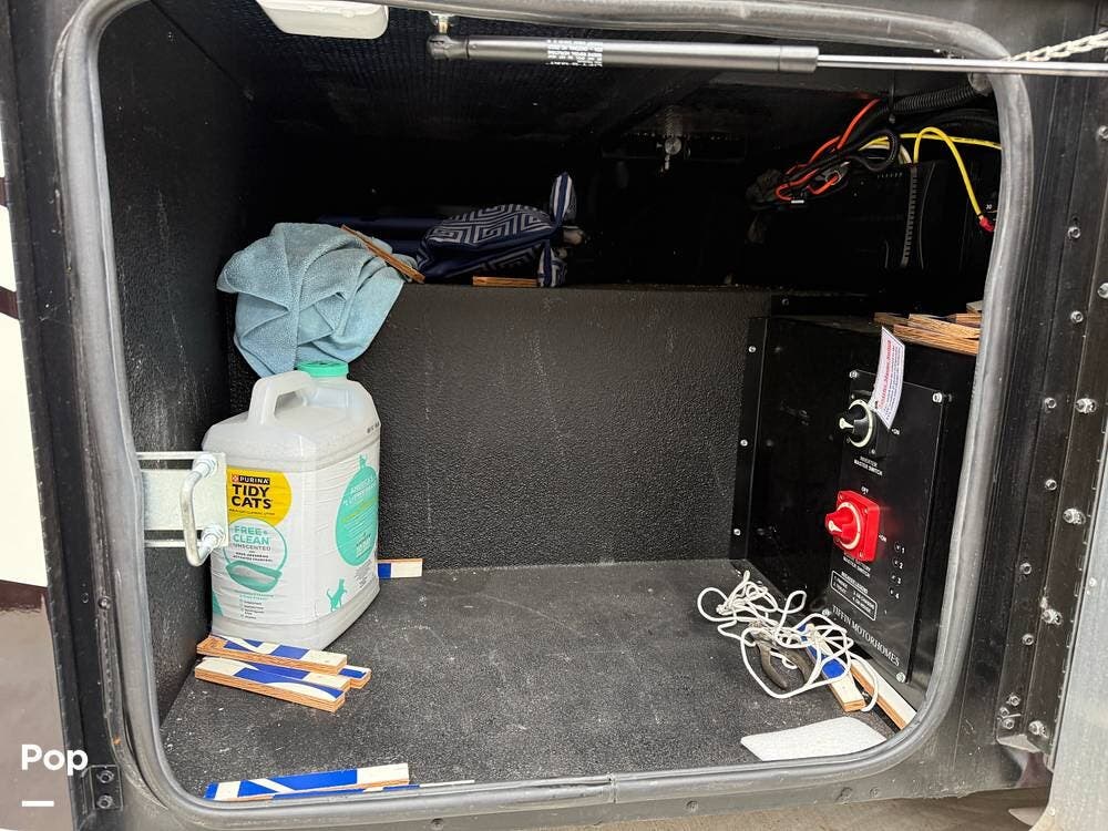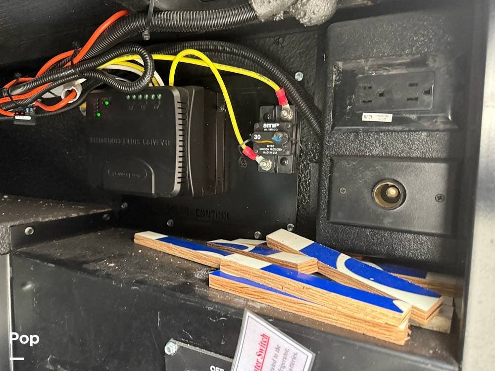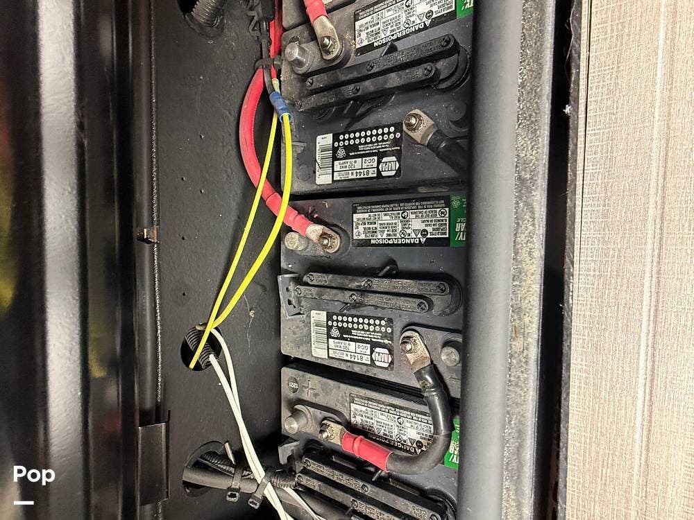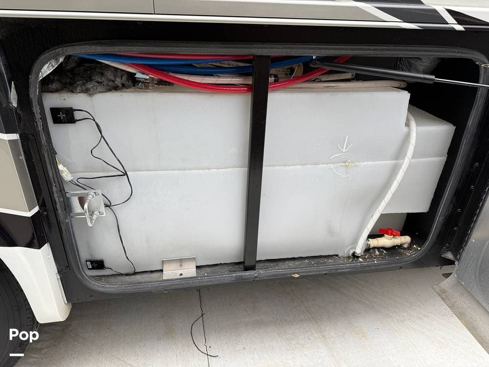 Upgrades include a tire pressure monitoring system (EezTire), AGM batteries replacing the old lead-acid ones, a screen door grab handle, and Reflectix inside all storage compartments, reducing heat from hot days and keeping the coach more comfortable.