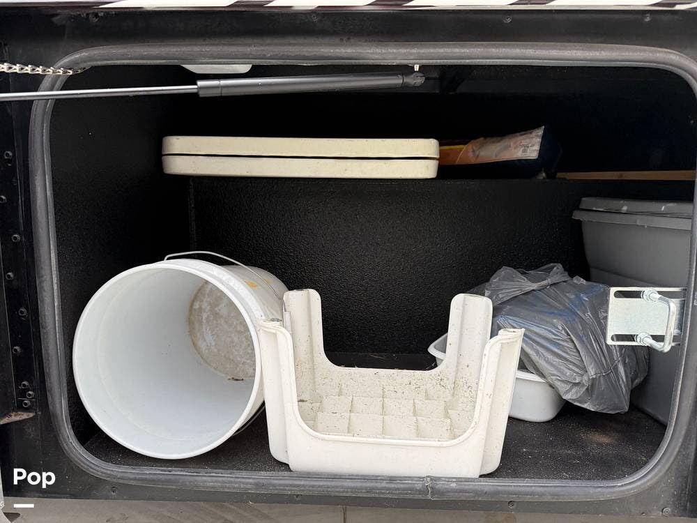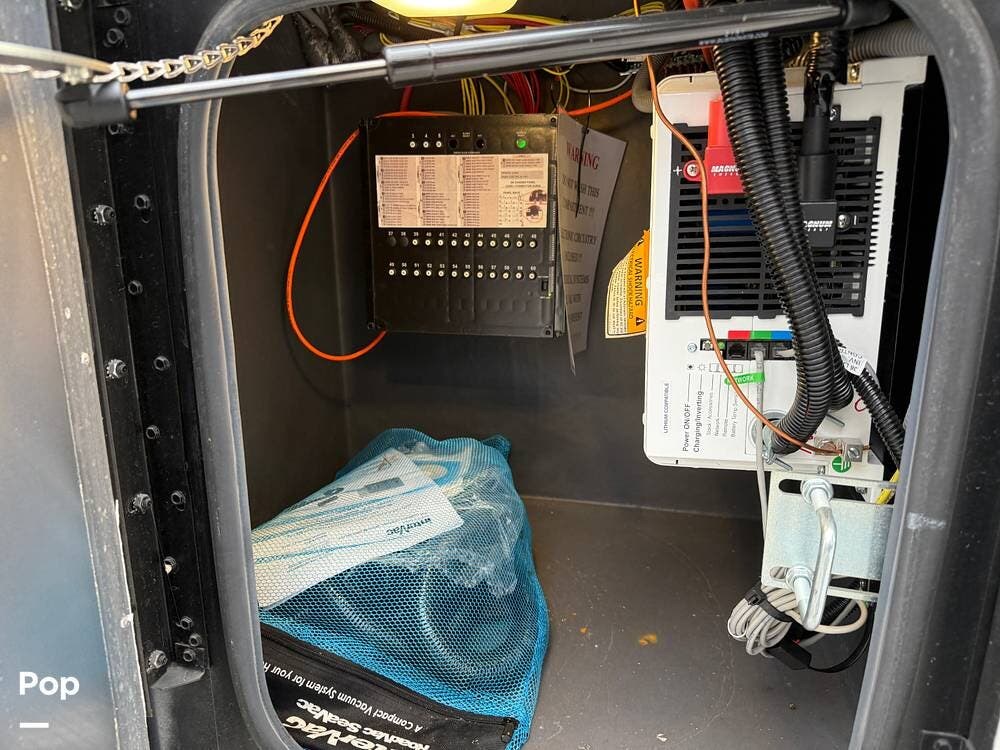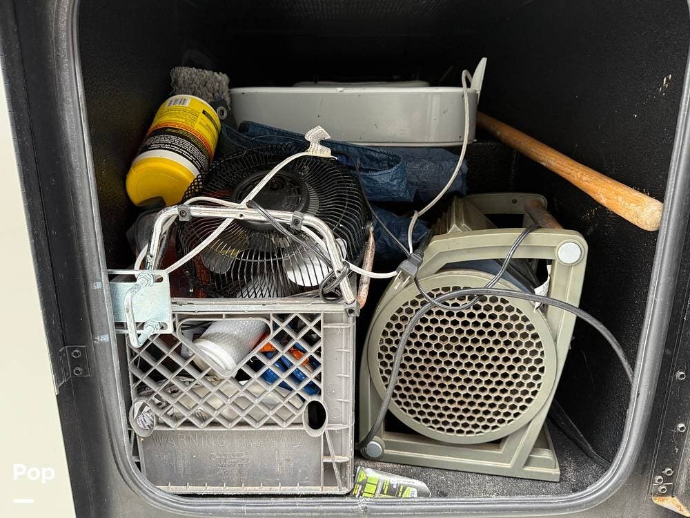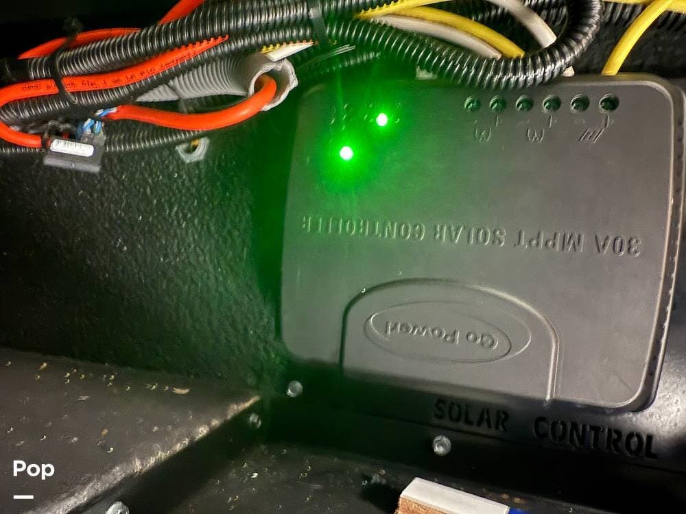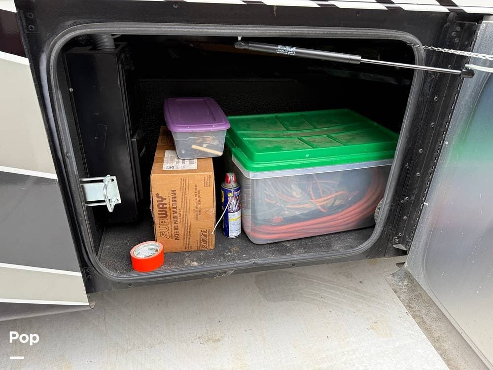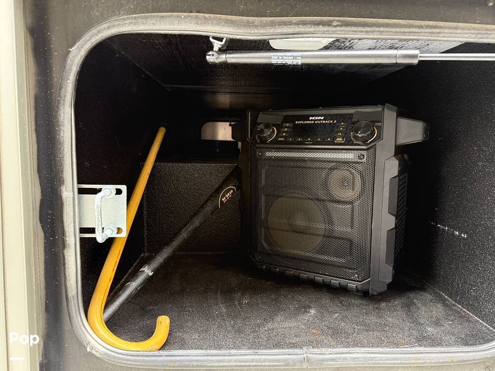 Upgrades include a tire pressure monitoring system (EezTire), AGM batteries replacing the old lead-acid ones, a screen door grab handle, and Reflectix inside all storage compartments, reducing heat from hot days and keeping the coach more comfortable.