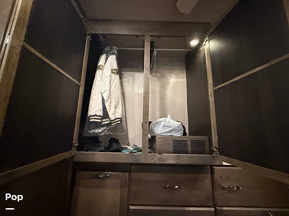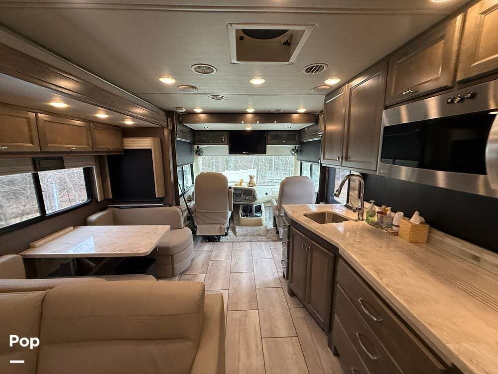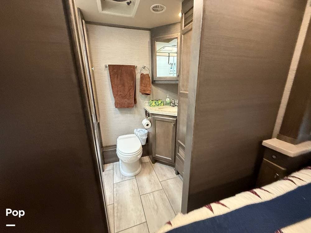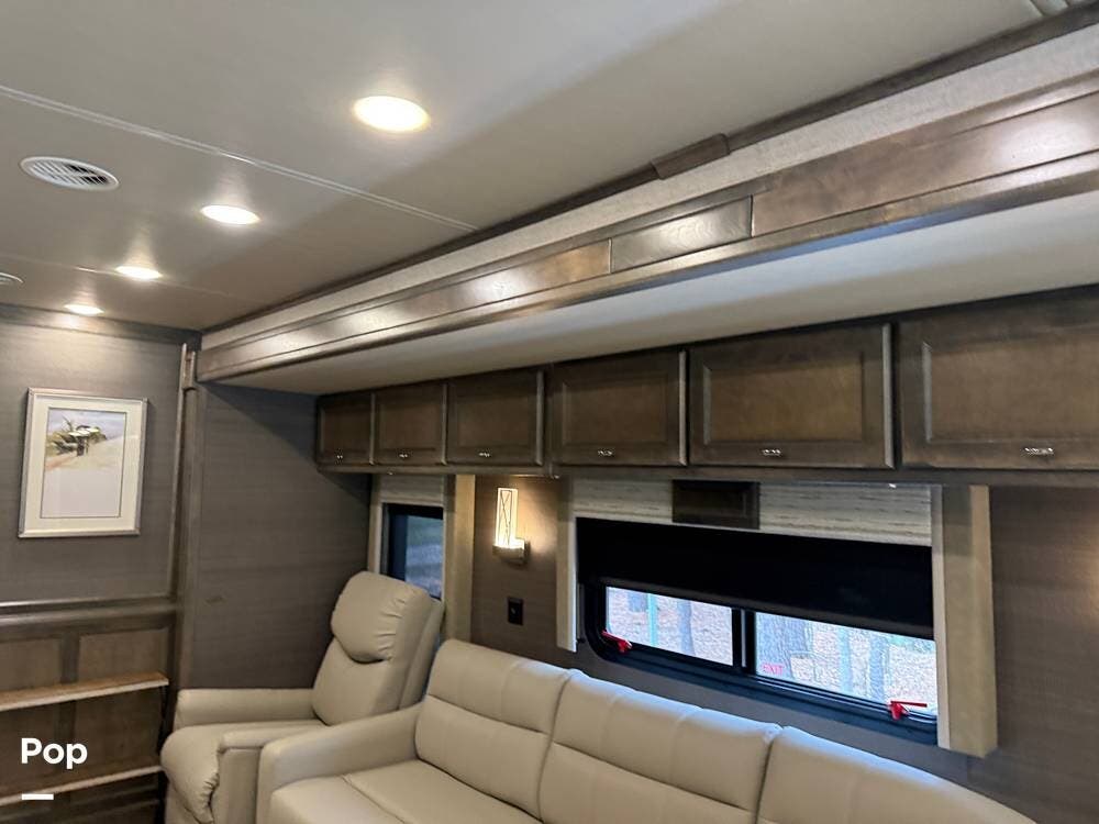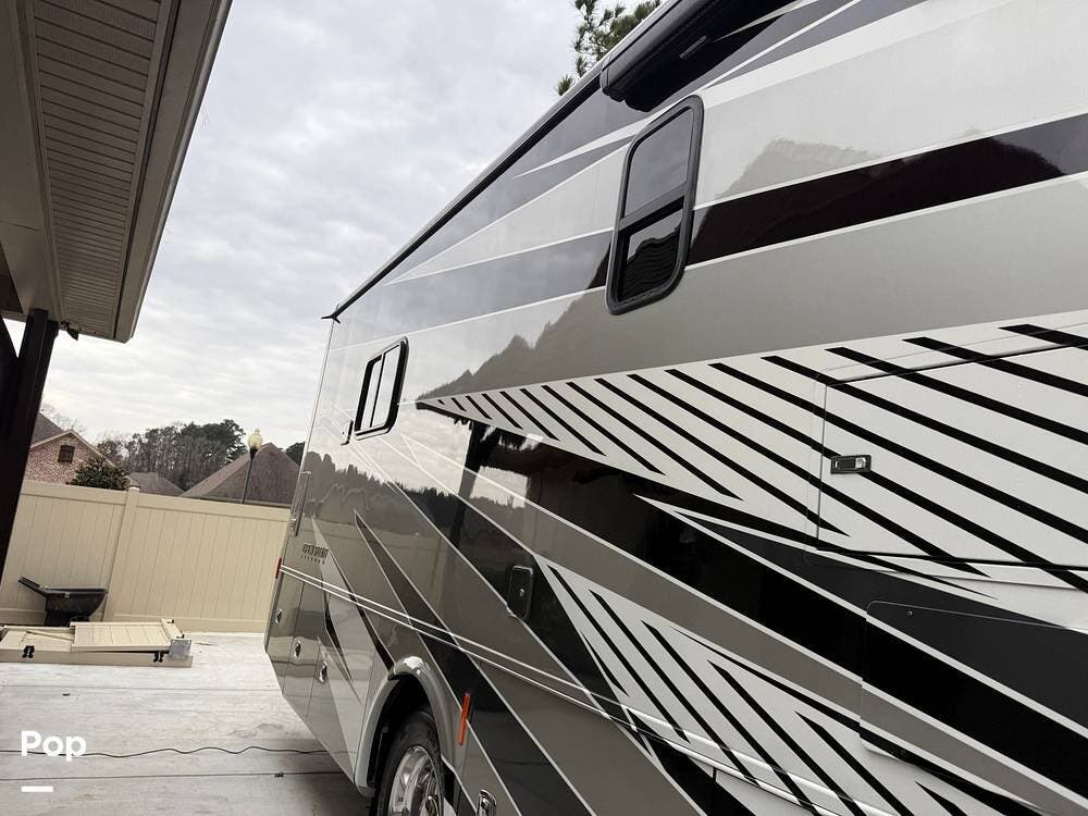 The 36UA features a Ford F53 chassis, a 7.3L V8 engine, and an ample 350 horsepower with torque of 468 for smooth highway cruising and reliable performance. Its exterior is sleek, featuring full-body paint and a power patio awning, which adds an elegant look and extra shade for outdoor relaxation.