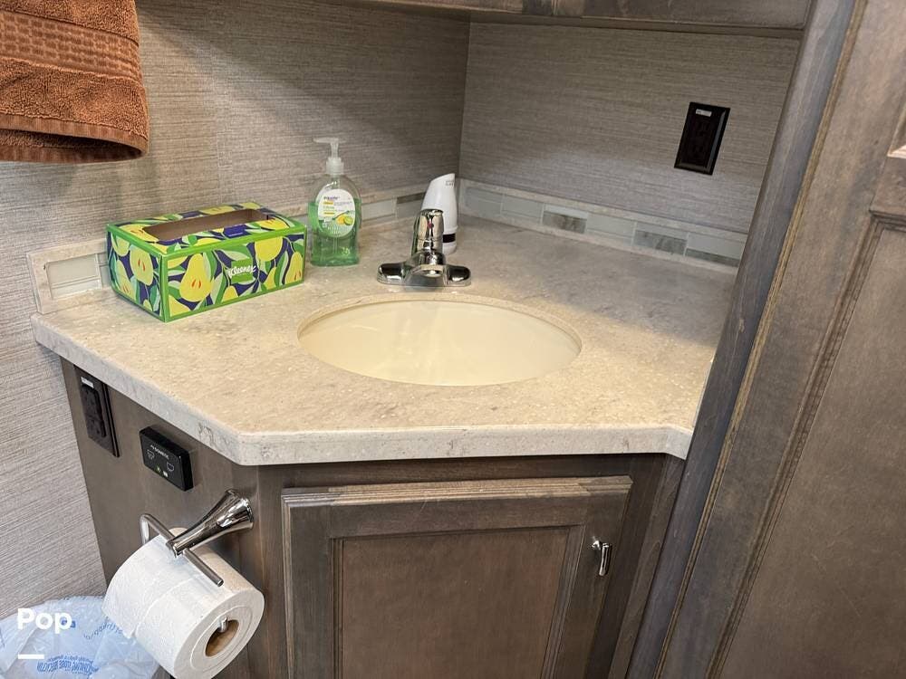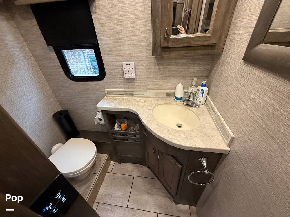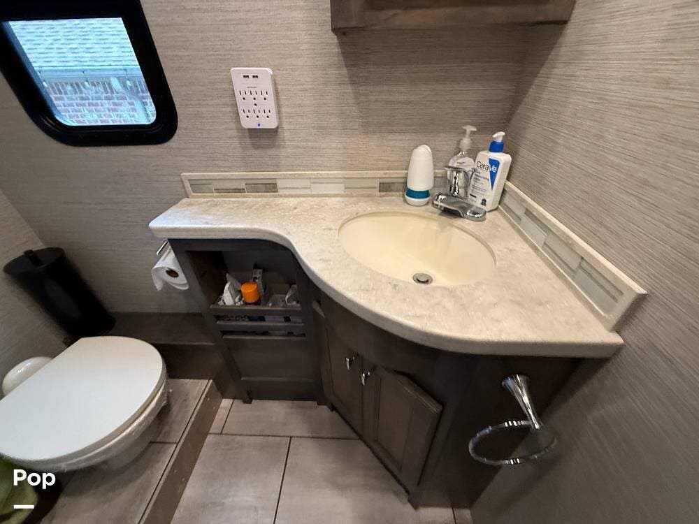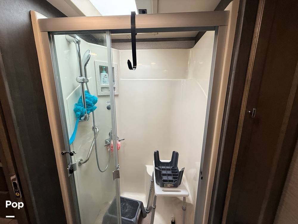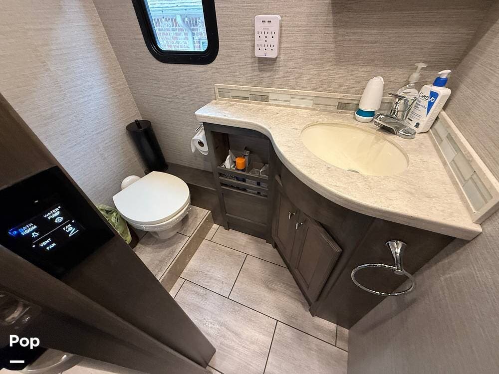 The rear full bathroom usually includes a large shower, a vanity with ample storage, and a washer/dryer prep area, making long trips more manageable.