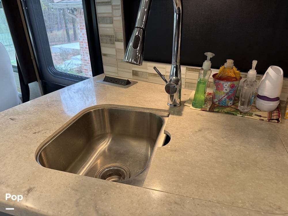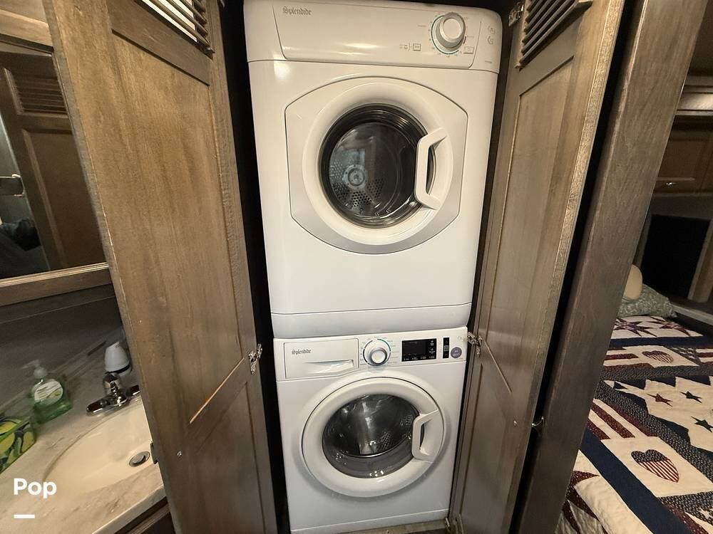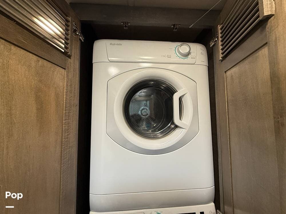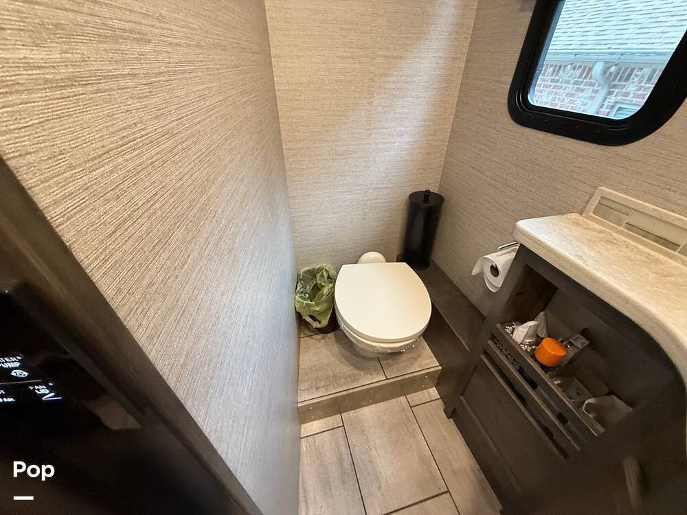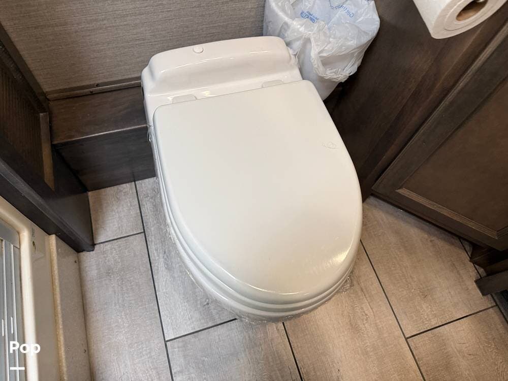 The rear full bathroom usually includes a large shower, a vanity with ample storage, and a washer/dryer prep area, making long trips more manageable.
