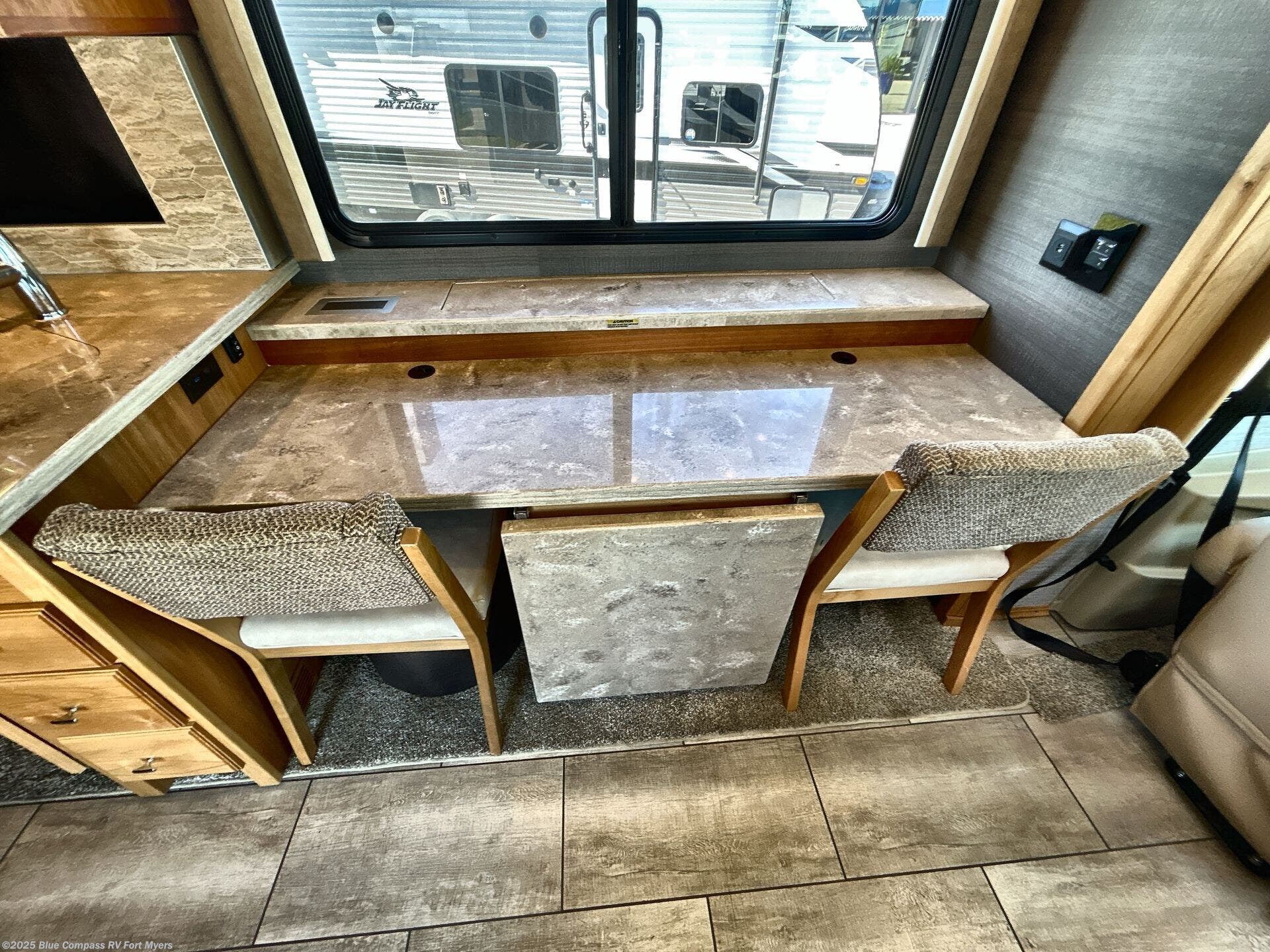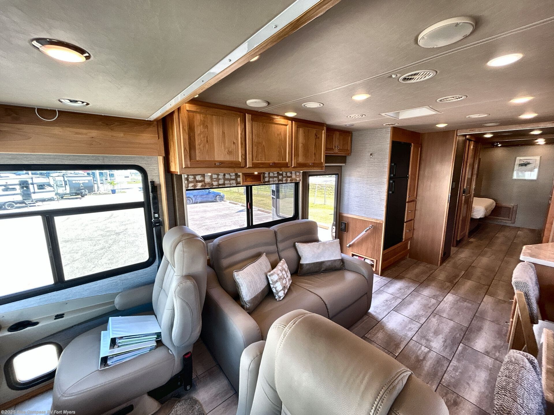 The whole family can join in on the fun with this motorhome! You will enjoy your privacy with the rear private bedroom which has a king bed slide across from a wardrobe with drawers below and a 32" TV with entertainment center, drawers, a hamper, and an egress window. The kiddos can sleep on the set of bunk beds and they can even bring a friend or two to sleep on the ultraleather flip and fold sofa bed and the optional drop-down front bunk if you chose that. The full bathroom has a radius shower for everyone to freshen up in each morning and a linen closet to keep your towels close. Keep everyone's bellies full with a pull-out pantry, a three burner cooktop, and a two door gas/electric refrigerator then enjoy them at the dinette bar or you can switch it out for an optional dinette with work station!