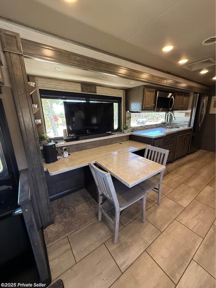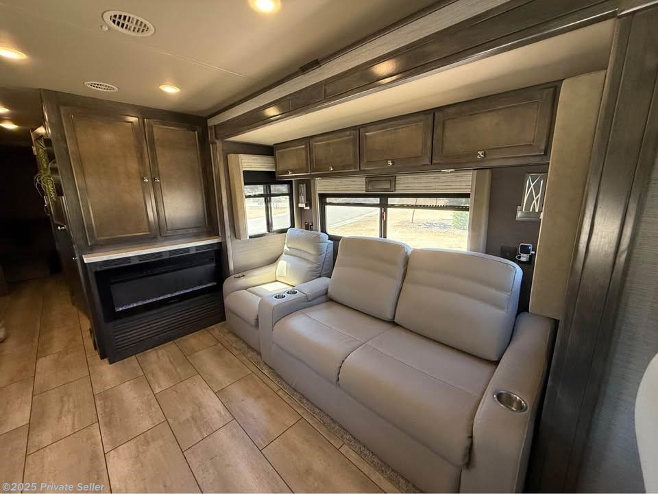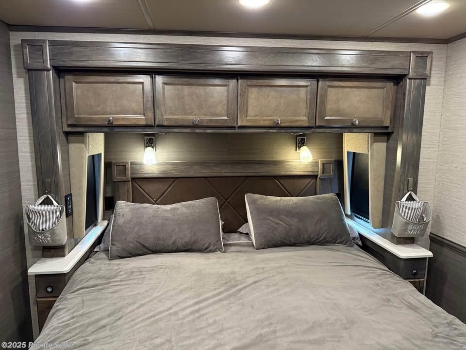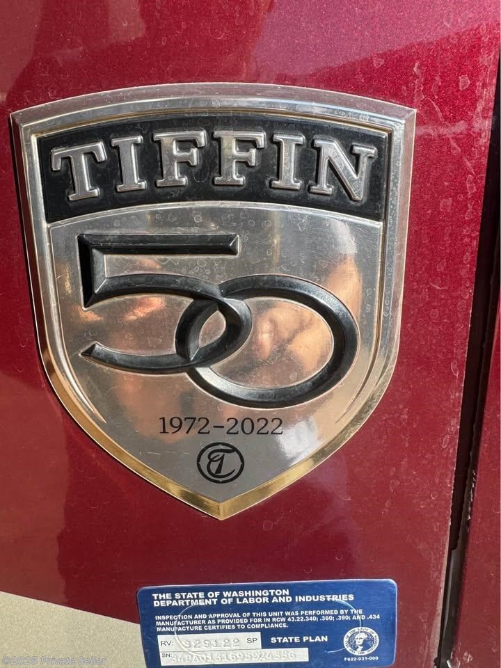 The 34PA is the best selling Tiffin model for many reasons. Most notably the open space created by the 4 slide outs! Enough room at the end of the bed for 2 people to get ready at the same time. The pillow top King bed is very comfortable, ceiling fan above bed. This model has extra counter space with telescopic TV directly across from the couch and recliner. The table folds down out of the way when not in use. Full size refrigerator with ice maker, convection microwave, washer/dryer, and on-demand water heater. Access bathroom from hall or bedroom. Large shower. Pull out couch and convenient drop down bed above cab. 4 TVs (Cab, Living, Bedroom, Outdoor). This is the highly sought after "modern" looking cabinets and flooring. Hydraulic leveling system, solar panels, 7.0 Onan generator, 2000W Pure Sine Inverter, Spyder multiplex system, power driver and passenger seats, fireplace, central vac, Open Road Wifi booster, in-dash navigation, slide toppers, and so much more.