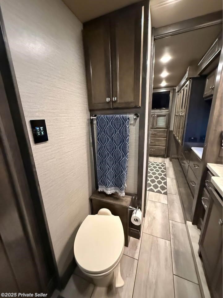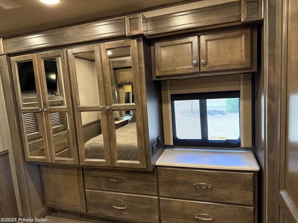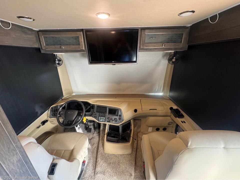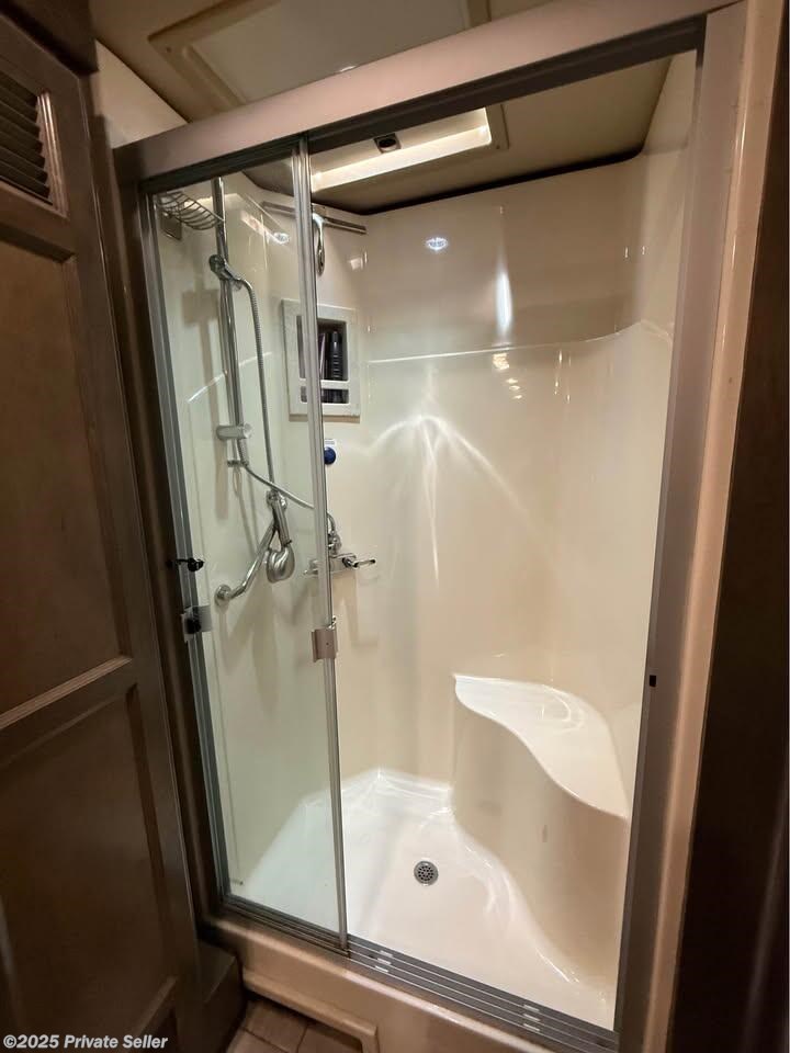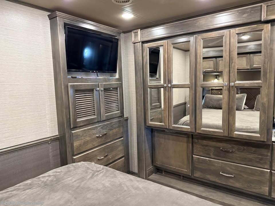 The 34PA is the best selling Tiffin model for many reasons. Most notably the open space created by the 4 slide outs! Enough room at the end of the bed for 2 people to get ready at the same time. The pillow top King bed is very comfortable, ceiling fan above bed. This model has extra counter space with telescopic TV directly across from the couch and recliner. The table folds down out of the way when not in use. Full size refrigerator with ice maker, convection microwave, washer/dryer, and on-demand water heater. Access bathroom from hall or bedroom. Large shower. Pull out couch and convenient drop down bed above cab. 4 TVs (Cab, Living, Bedroom, Outdoor). This is the highly sought after "modern" looking cabinets and flooring. Hydraulic leveling system, solar panels, 7.0 Onan generator, 2000W Pure Sine Inverter, Spyder multiplex system, power driver and passenger seats, fireplace, central vac, Open Road Wifi booster, in-dash navigation, slide toppers, and so much more.