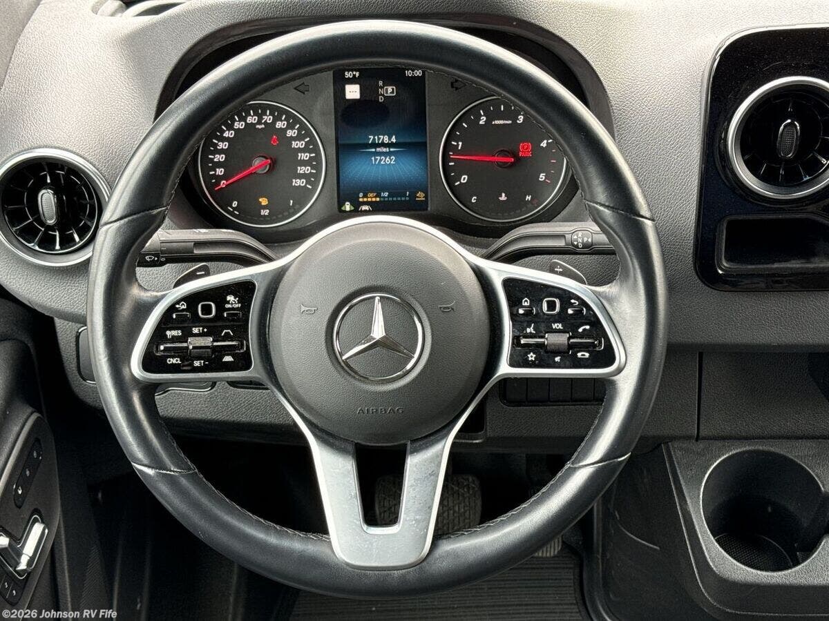 Vehicle Description: 2022 Tiffin Cahaba 19SC Explore the open road in style and comfort with the 2022 Tiffin Cahaba 19SC, a versatile and compact Class B RV from Tiffin Motorhomes. This superbly crafted RV is housed on the reliable Mercedes-Benz 2500 Sprinter Cargo Chassis, ensuring a smooth and powerful driving experience facilitated by its 3.0L V6 Turbo Diesel Engine. **Engine & Chassis** - Mercedes-Benz 3.0L V6 Turbo Diesel Engine - 188 HP with 325 lb-ft Torque - Mercedes-Benz 7G-Tronic Automatic Transmission - SumoSprings Ride Assist System for a comfortable drive - Load Adaptive Electronic Stability and Optional 4-Wheel Drive - Four Wheel ABS Brakes - Vision Off-Road Wheels with Rear Mud Guards **Cab Features** - Running Board Lighting for enhanced visibility - Swivel Adjustable Heated Cab Seats for ultimate comfort - Leather Wrapped Steering Wheel - Heated Power Mirrors - Modern 10.25-inch MBUX Multimedia System - Apple CarPlay & Android Auto Compatibility - Intelligent Navigation and Multiple Driver Assist Features, including Crosswind, Blind Spot, Emergency Call - Parking 360-Degree Camera - Privacy Curtain **Living Spaces & Dining** - Girard Power Awning with Integrated LED Lights - Patio Light and Flush Tinted Windows - Privacy Shades and Powered Roof Vents - Handcrafted Laminate Cabinets - Galley with Overhead Cabinets - Solid Surface Countertop and Stainless Steel Sink - Sprayer Faucet and Stainless Steel Appliances - 2.3cf 12v Fridge Freezer and Convection Microwave - Portable Induction Cooktop **Electronics & Connectivity** - Spyder Multiplex System for enhanced control - MB Wireless Internet Access - Tire Pressure Monitoring System - USB Outlets Throughout - 110v Outlets for powering devices **Bathroom Essentials** - Convenient Wet Bath with Aqua View Showermiser - Shower Surround and Toilet with a Dry Roll Toilet Paper Holder - Retractable Shower Screen and Shower Skylight - Roof Vent Fan for ventilation **Mechanical Systems** - 30-Amp SmartPlug Service Cord - Efficient Lithium House Battery - 13.5 AC Soft-Start Bluetooth capability - Elwell Timberline Hydronics for temperature control - Water Filter and Sewer Hose Storage - Black Tank Flush to maintain cleanliness With an odometer reading of just 17,262 miles, this used 2022 Tiffin Cahaba 19SC represents a well-maintained and ready-to-go RV, perfect for travelers seeking adventure with all the comforts of home on board. ???
