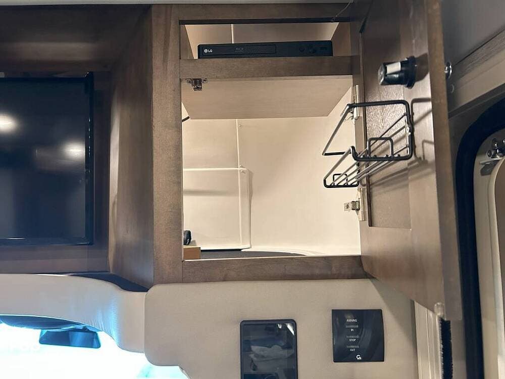 On the exterior, you can relax under the power awning and enjoy the exterior TV.