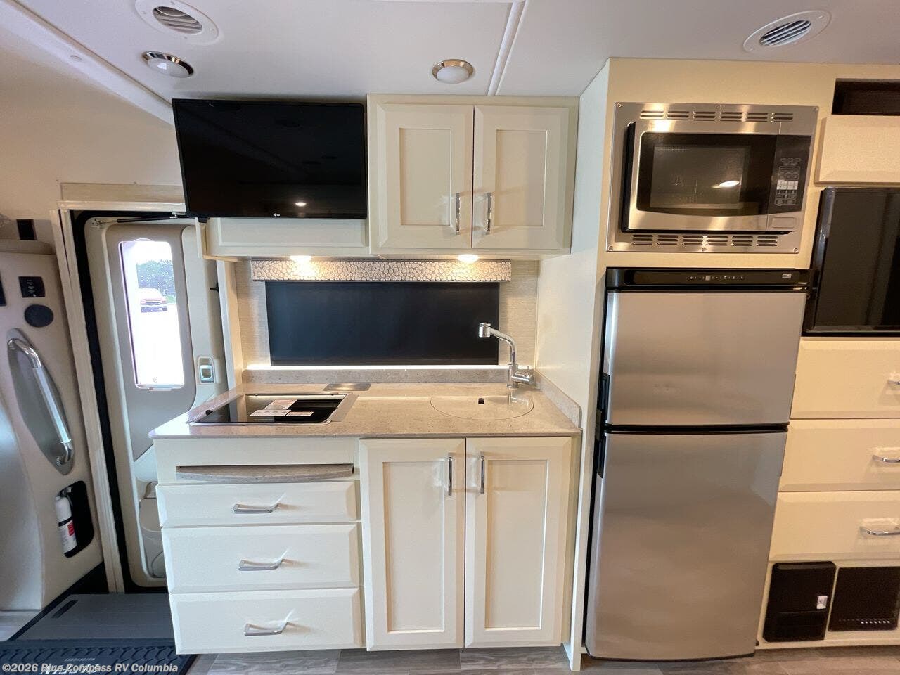Travel with your favorite person, your family or a some friends to see nature along the highways, up close and where ever the road takes you! You will find sleeping space for five with the bunk over the cab, the booth dinette and the versatile queen Murphy bed and sofa combo! You can watch the 32" TV while the cook makes dinner using the convection microwave or cooktop, and the 12V 6.5 cu. ft. refrigerator can hold the cold items. The rear full bathroom gives you privacy and the sliding door saves space. You might like to add a few options to customize your coach such as optional reclining theater seating or a tri-fold sofa in place of the dinette, a central vacuum system, an overhead entertainment center in place of the bunk, and/or an exterior TV to enjoy under the awning.