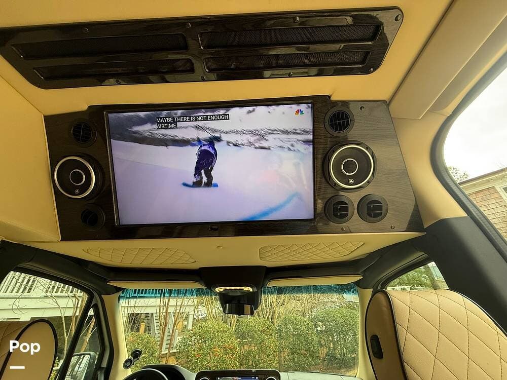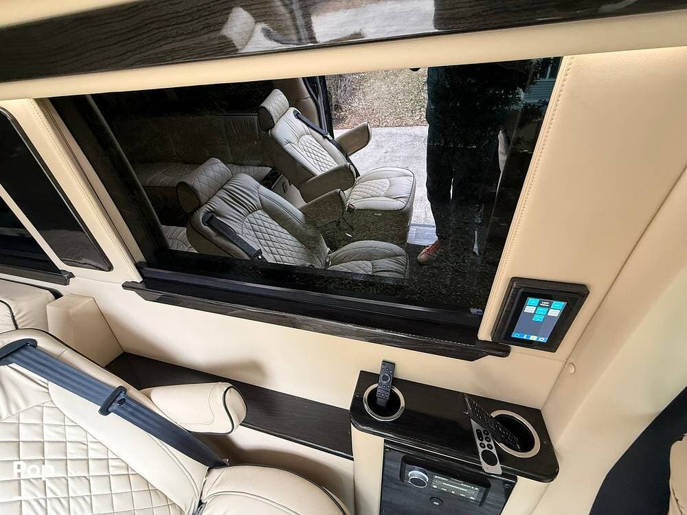 The van is equipped with a large TV and a well-appointed sound system that will keep the party going.
