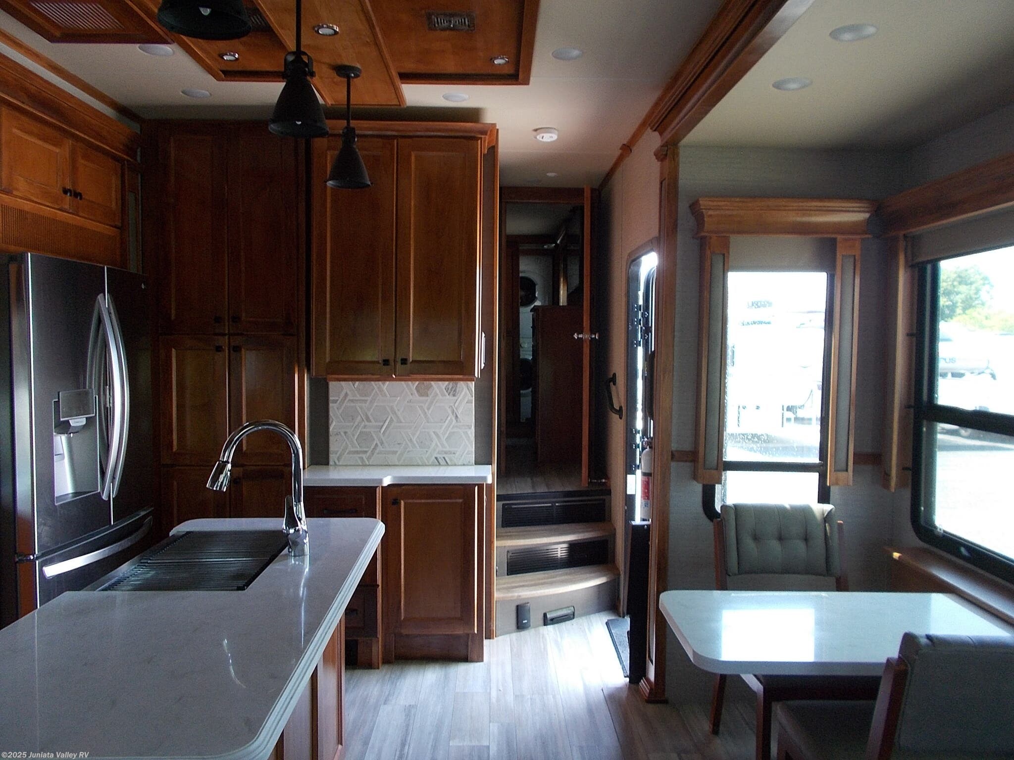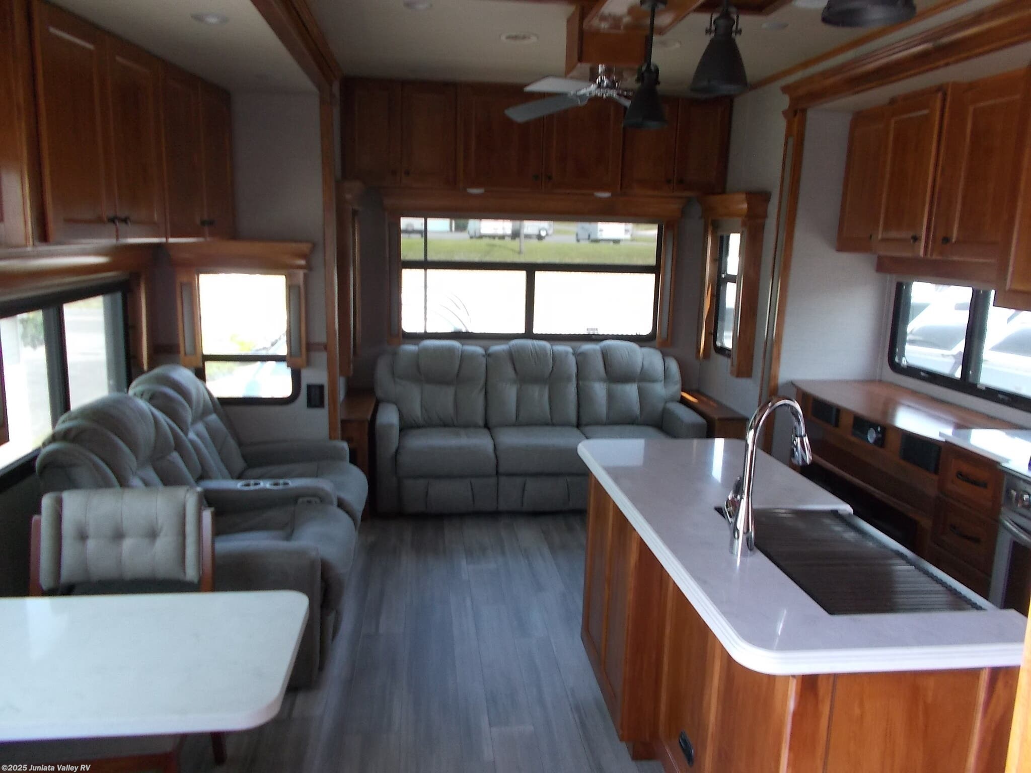 The Beacon features a 34-foot 8-inch floor plan known as the "34RLB," designed to comfortably sleep up to six people. Its spacious interior includes multiple slide-outs—totaling three—that create a large, open living area accessible via a sturdy slide-out awning. With a dry weight of approximately 13,520 pounds and a gross vehicle weight of 18,000 pounds, this fifth wheel offers a well-balanced payload capacity of 4,480 pounds for all your gear and essentials.