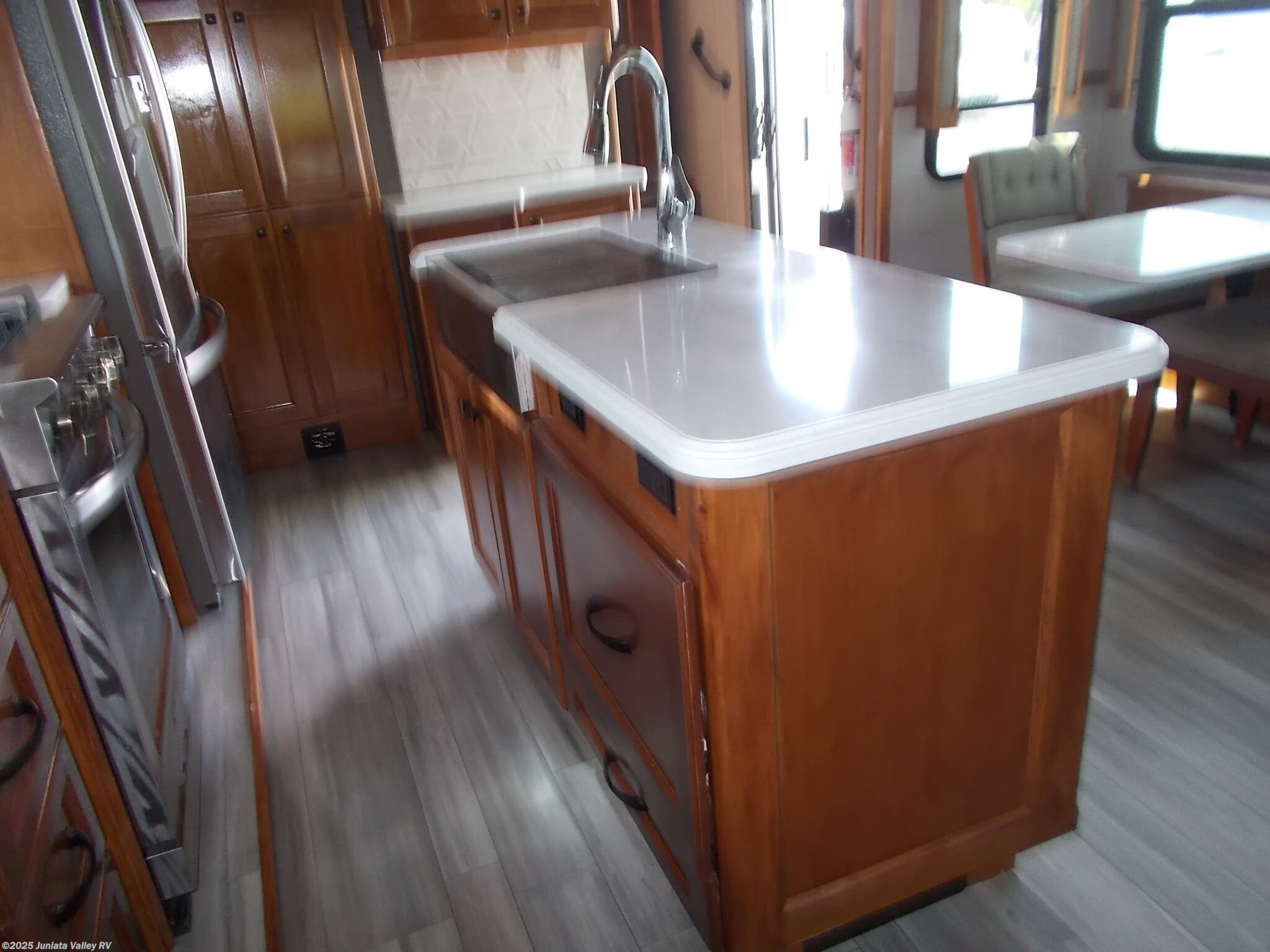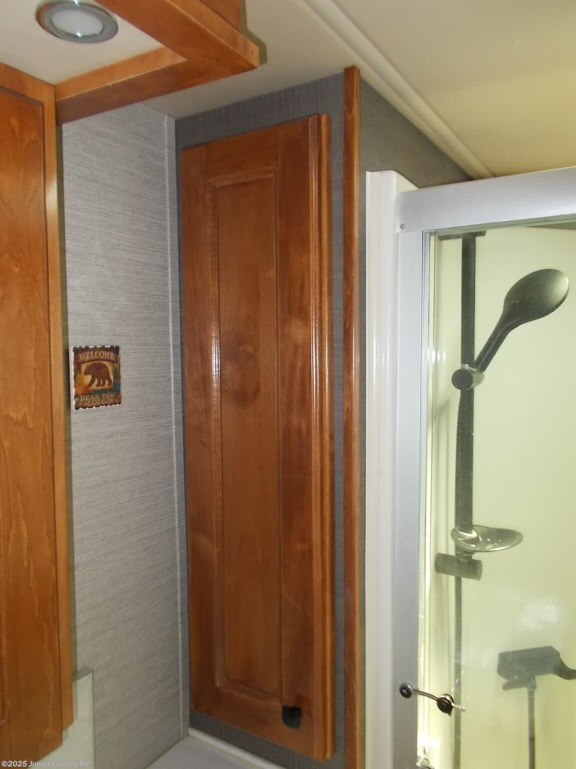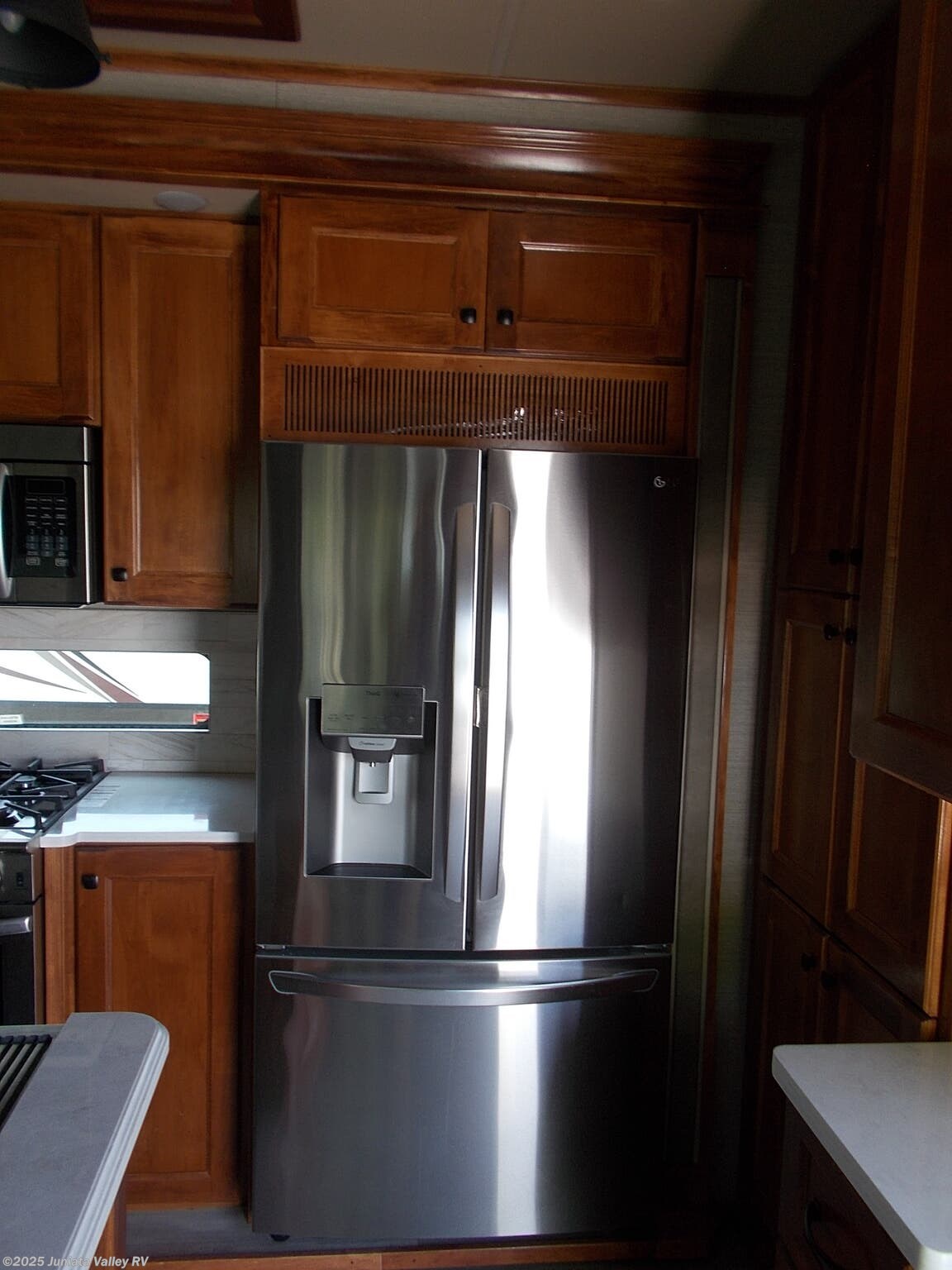 Azdel Composite Panels, Ceiling Fan, Central Vacuum, Fireplace, Fold and Tumble Sofa, Free Standing Dinette w/Chairs, Glass Shower Door, King Size Bed, Kitchen Sink, Medicine Cabinet, Overhead Cabinetry, Pantry, Rocker Recliner(s), Roof Vents, Shower, Solid Surface Countertops, Table and Chairs, Theater Seating, Toilet, Vanity, Wardrobe(s) -