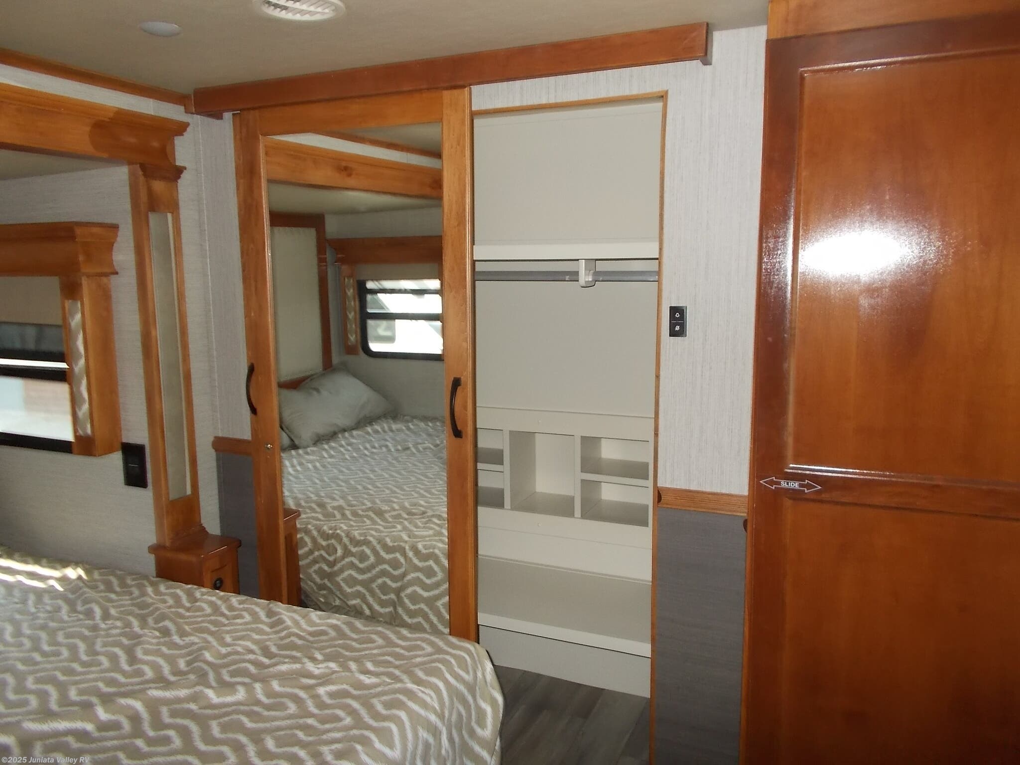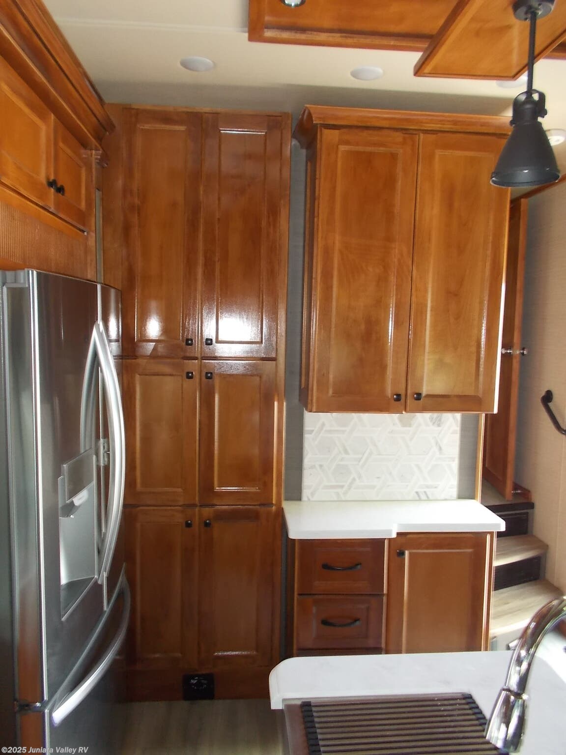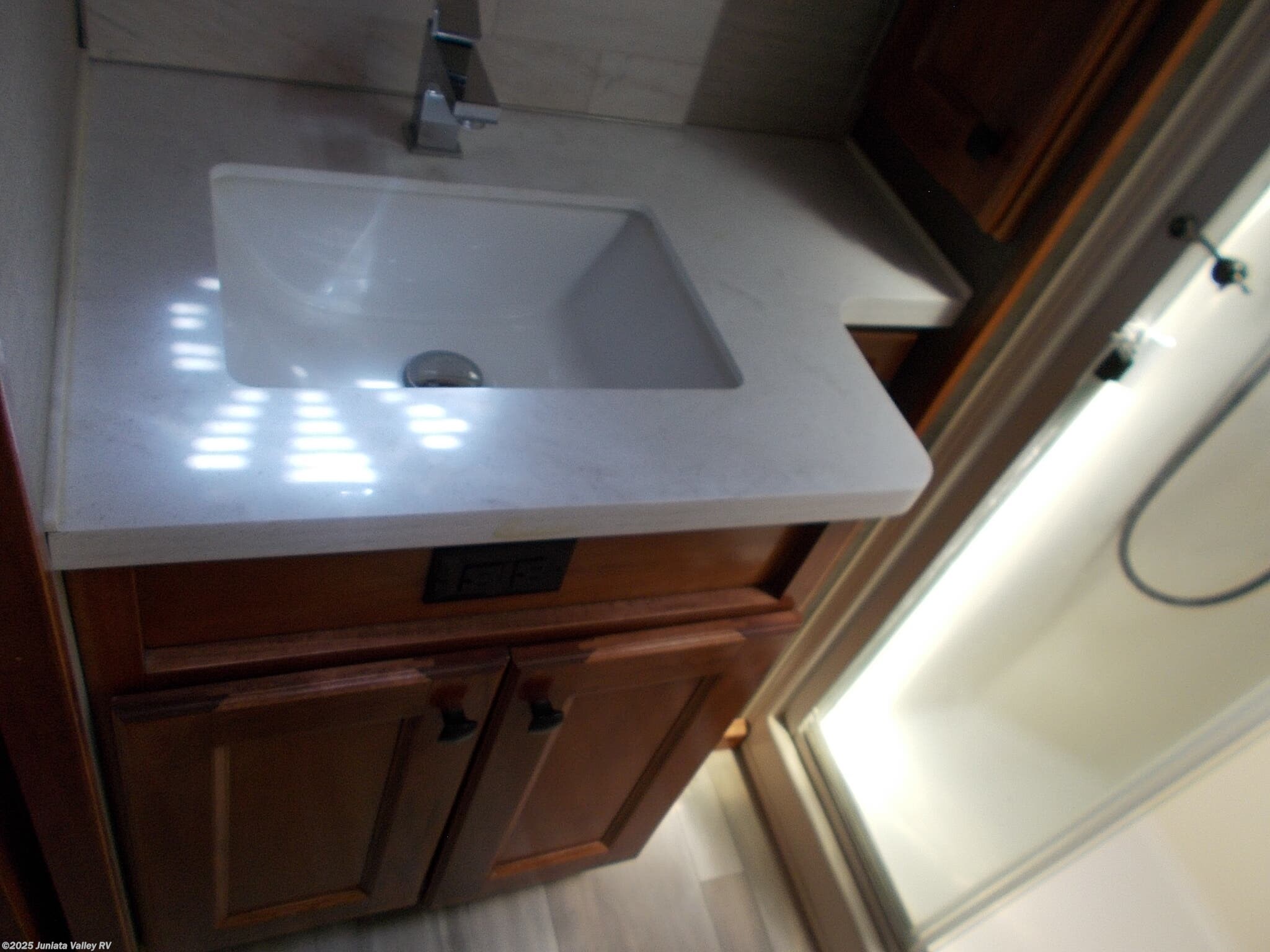 Azdel Composite Panels, Ceiling Fan, Central Vacuum, Fireplace, Fold and Tumble Sofa, Free Standing Dinette w/Chairs, Glass Shower Door, King Size Bed, Kitchen Sink, Medicine Cabinet, Overhead Cabinetry, Pantry, Rocker Recliner(s), Roof Vents, Shower, Solid Surface Countertops, Table and Chairs, Theater Seating, Toilet, Vanity, Wardrobe(s) -