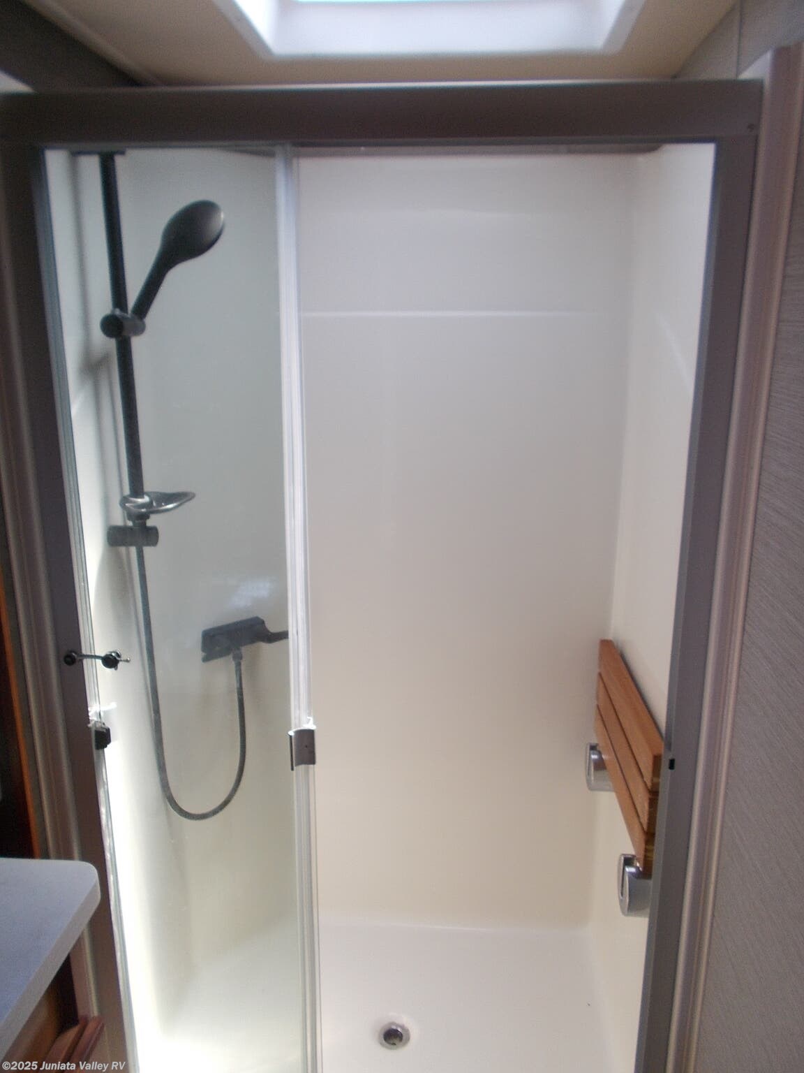 - Outdoor living benefits with exterior speakers, awning, exterior shower, and power roof vent