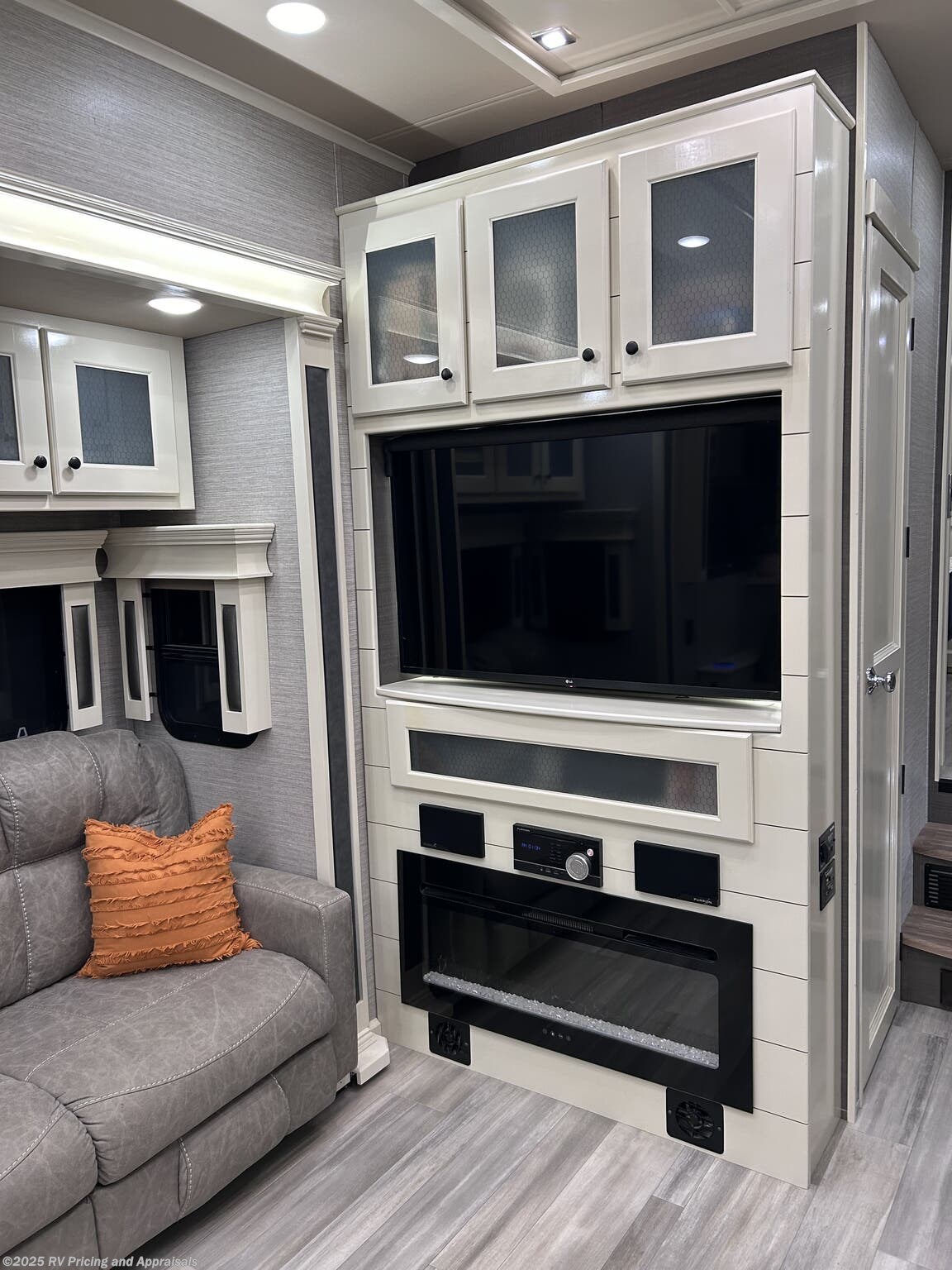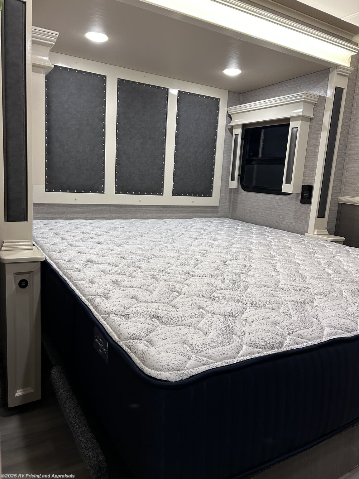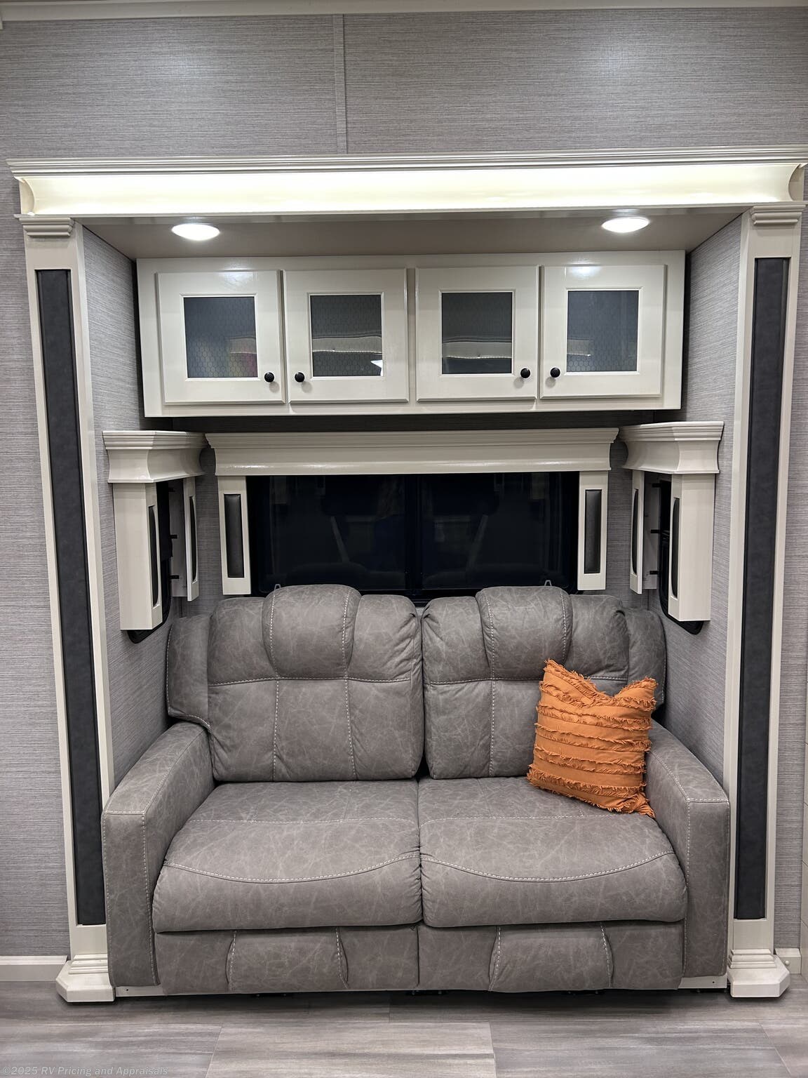 This Beacon is a meticulously cared-for, one-owner RV described as excellent inside and out. It has been stored indoors, with no smoking, pets, and records show under 11,000 miles total. The RV remains a showcase of premium materials, refined craftsmanship, and durable components designed to deliver years of dependable use. The combination of factory upgrades and thoughtful owner-installed enhancements creates a level of quality rarely found in pre-owned luxury fifth wheels.