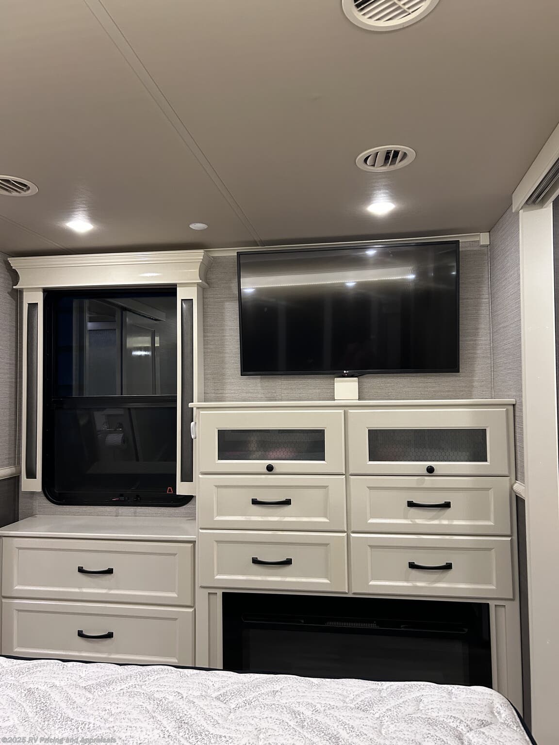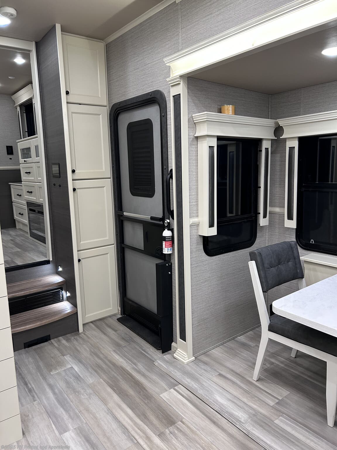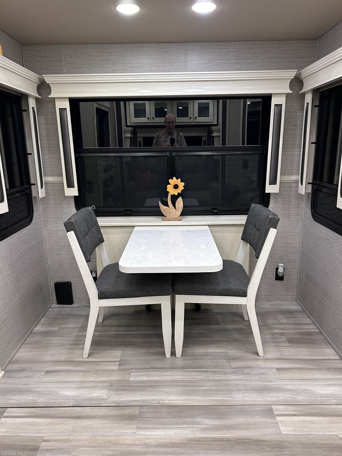 This Beacon is a meticulously cared-for, one-owner RV described as excellent inside and out. It has been stored indoors, with no smoking, pets, and records show under 11,000 miles total. The RV remains a showcase of premium materials, refined craftsmanship, and durable components designed to deliver years of dependable use. The combination of factory upgrades and thoughtful owner-installed enhancements creates a level of quality rarely found in pre-owned luxury fifth wheels.