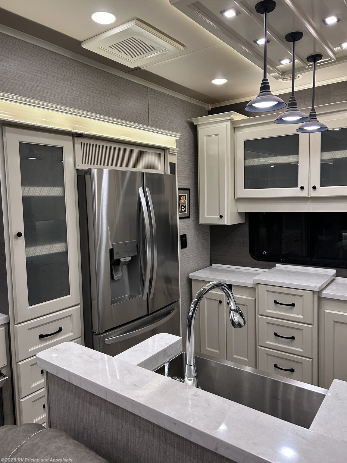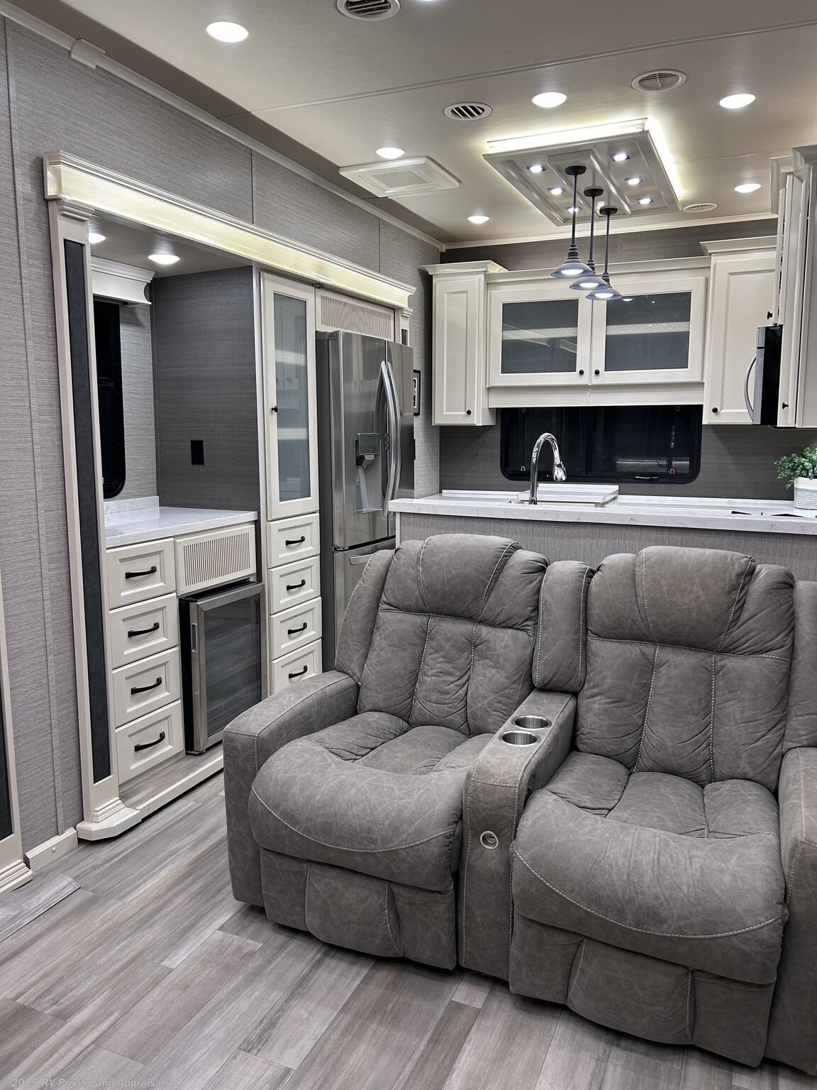 Discover the pinnacle of comfort and capability in this 2022 Beacon 41 LKB luxury fifth wheel RV. Built by Vanleigh, (a division of Tiffin) this one-owner unit blends striking aesthetics with thoughtful engineering to deliver an exceptional on-the-road experience. Featuring a full-body paint finish in NASA, A large rear kitchen layout with plenty of storage for superb workflow, and a spacious bath-and-a-half floorplan, this rig is designed to elevate weekend trips and extended adventures alike. Whether you’re boondocking or enjoying resort amenities, you’ll appreciate the refined interiors, robust construction, and travel-ready features that keep you moving with confidence.