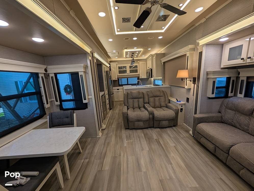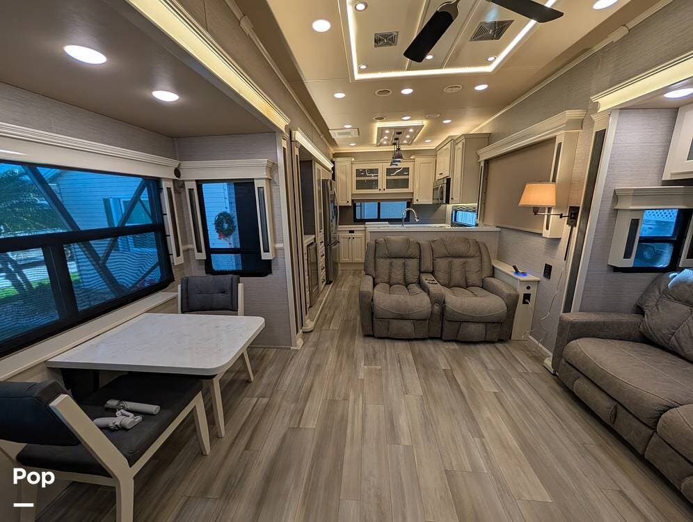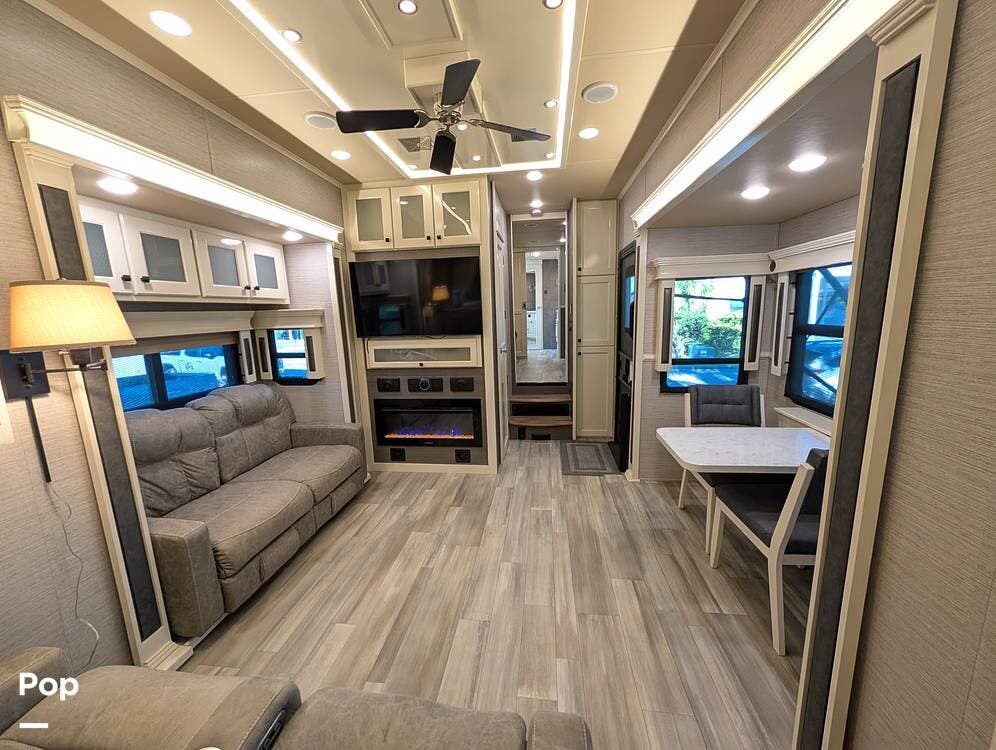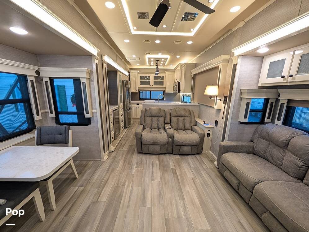 This 2022 Beacon 41LKB by Vanleigh delivers a true luxury fifth-wheel experience, often compared to a towable version of a Tiffin Allegro Bus, and for good reason. Built by Vanleigh RV, a Tiffin Motorhomes company, this coach reflects exceptional craftsmanship, residential design, and premium materials throughout. Finished in gorgeous full-body paint, it stands out immediately with a high-end presence rarely seen in towables.