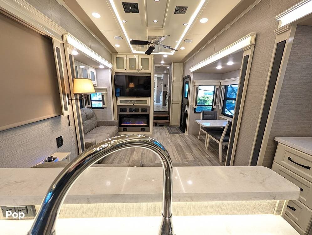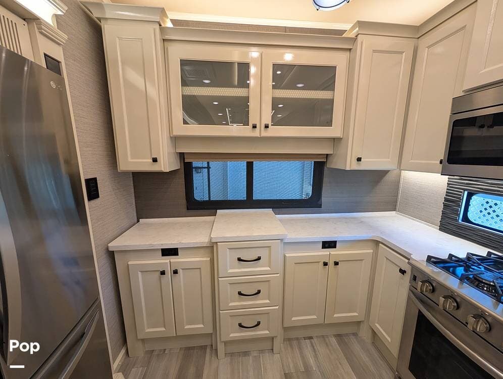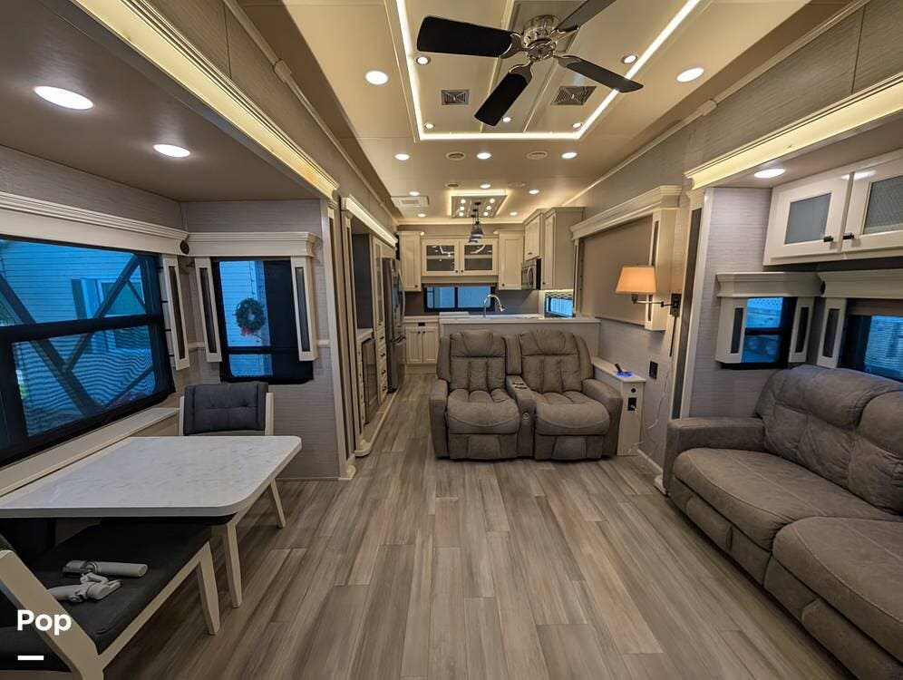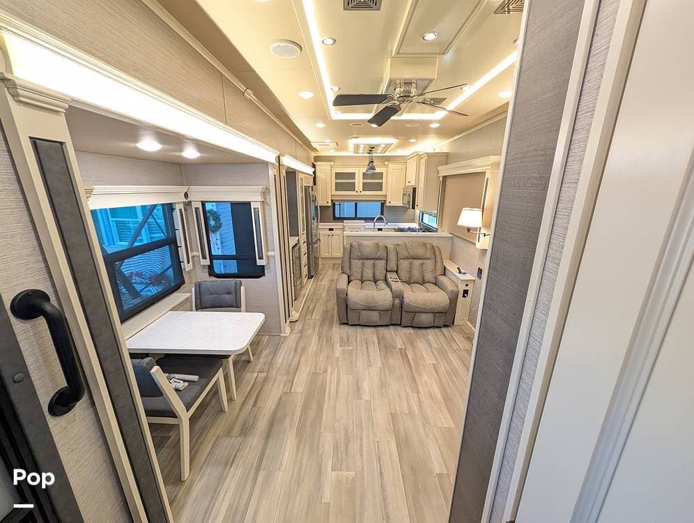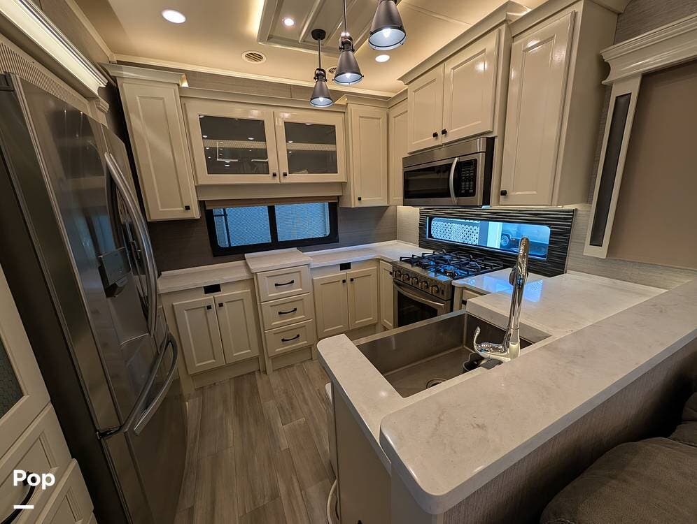This 2022 Beacon 41LKB by Vanleigh delivers a true luxury fifth-wheel experience, often compared to a towable version of a Tiffin Allegro Bus, and for good reason. Built by Vanleigh RV, a Tiffin Motorhomes company, this coach reflects exceptional craftsmanship, residential design, and premium materials throughout. Finished in gorgeous full-body paint, it stands out immediately with a high-end presence rarely seen in towables.