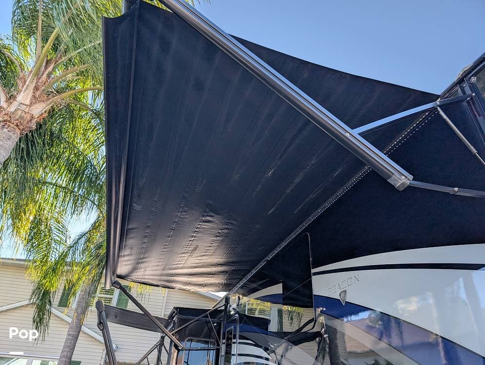 This Beacon is equipped with premium systems and conveniences, including Spyder multiplex wiring, a 1000-watt inverter, triple 15,000 BTU air conditioners for exceptional climate control, a power awning, and power leveling jacks for effortless setup. Ample exterior storage provides room for all your gear, while the coach's quality construction and thoughtful design are evident in every detail.