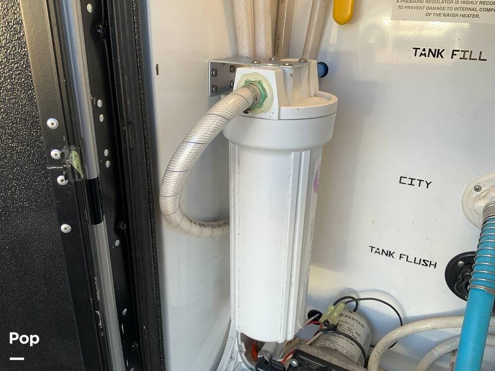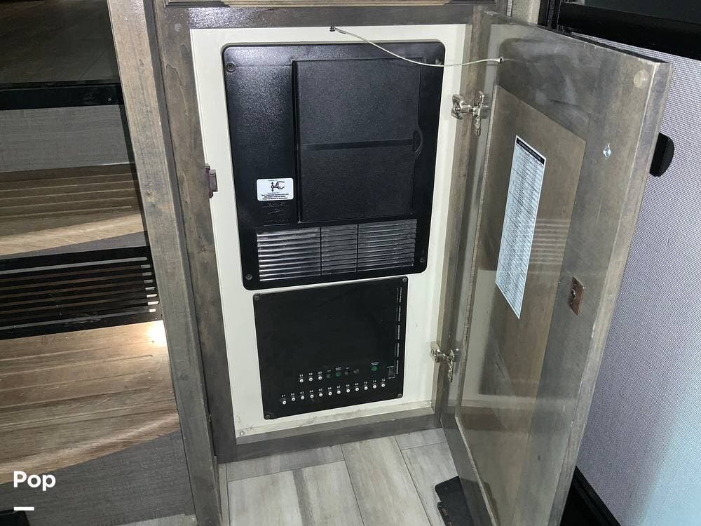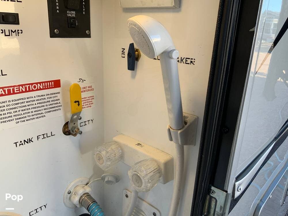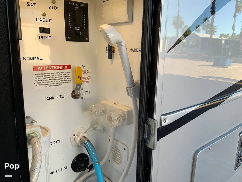 This unit is well-equipped mechanically, featuring three air conditioning units (one with heat pump), a Truma AquaGo on-demand hot water system, central vacuum, and a leveling system. It is prepped for both solar and generator installation if future off-grid capability is desired.