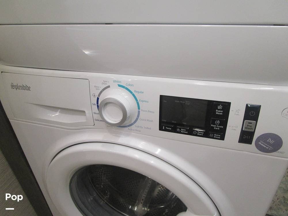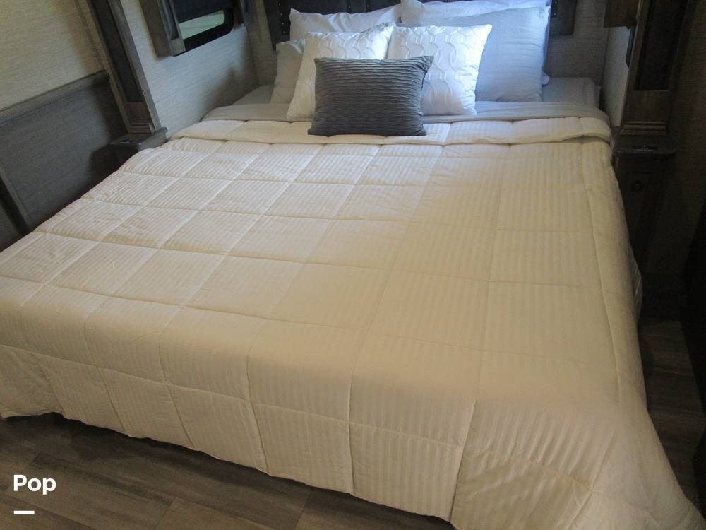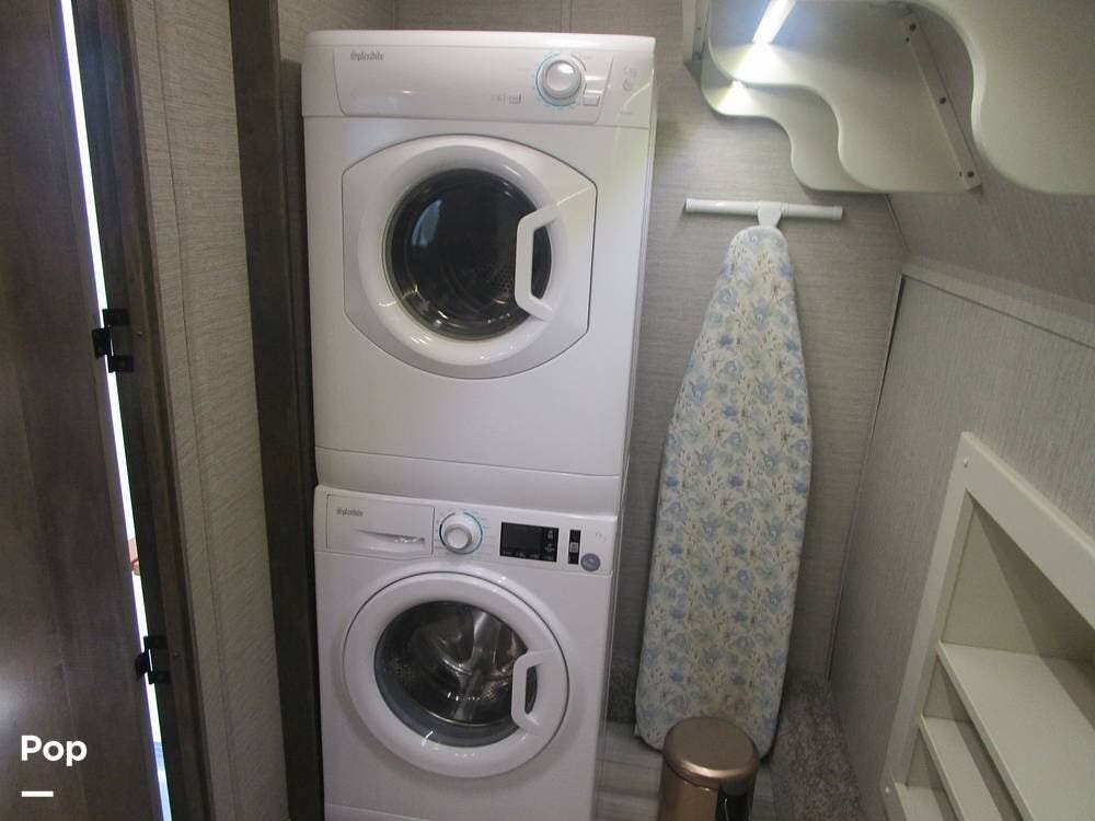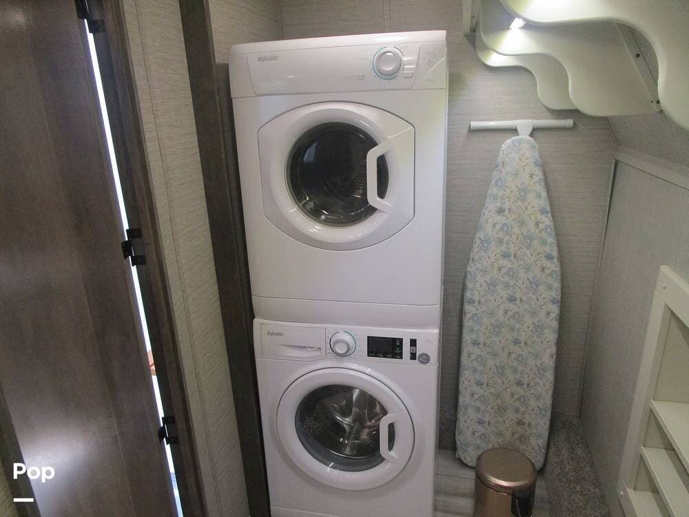 To the front is the half bath, master bedroom, full bath and laundry room. The King size bed has USB outlets and night shelves on each size. The laundry room has washer, dryer and closet area.