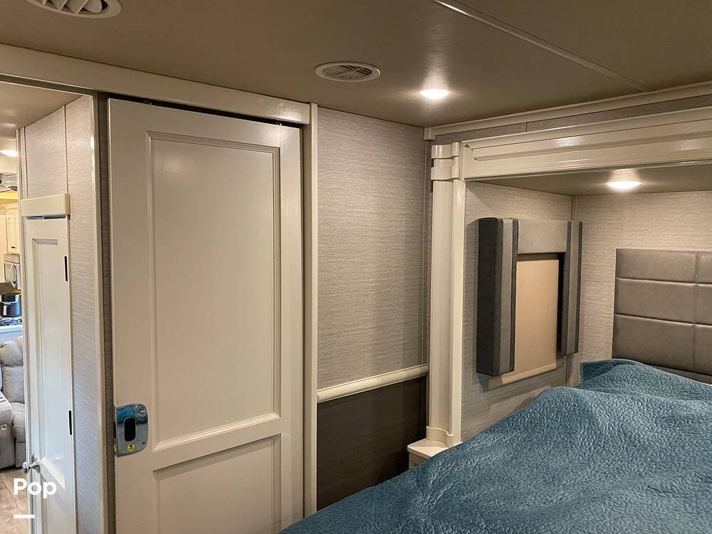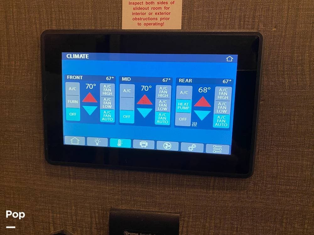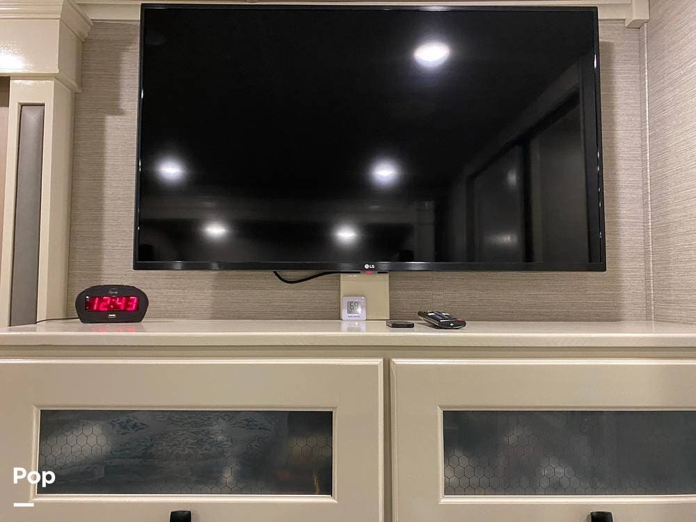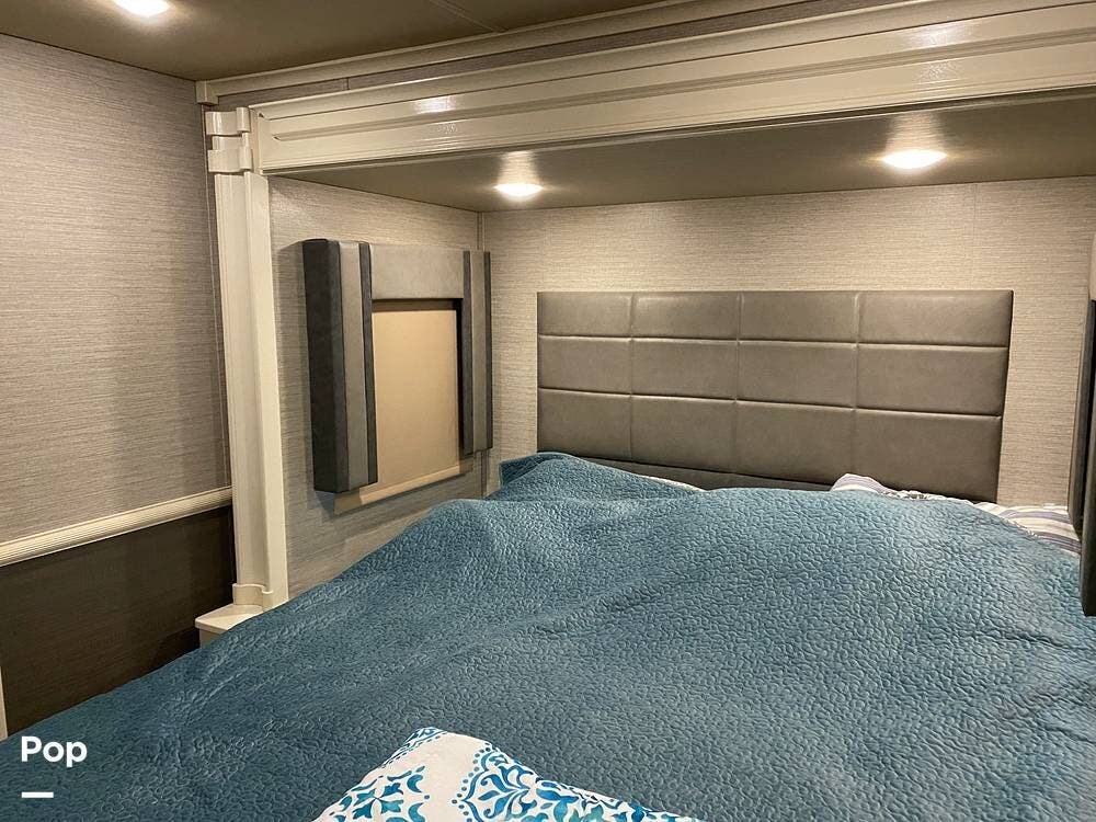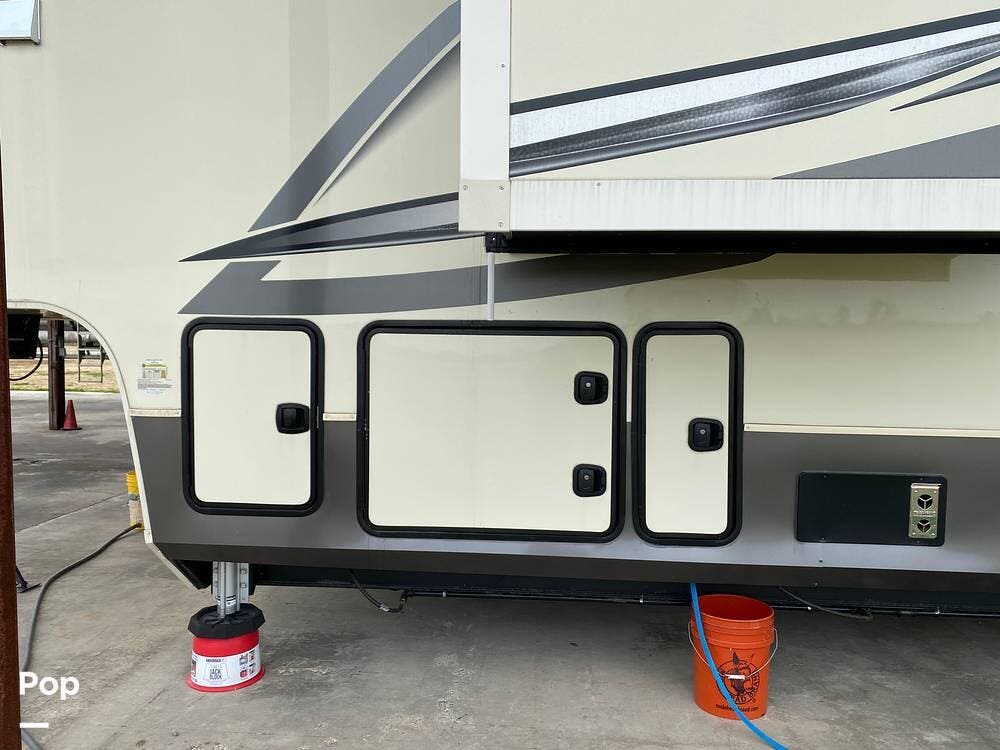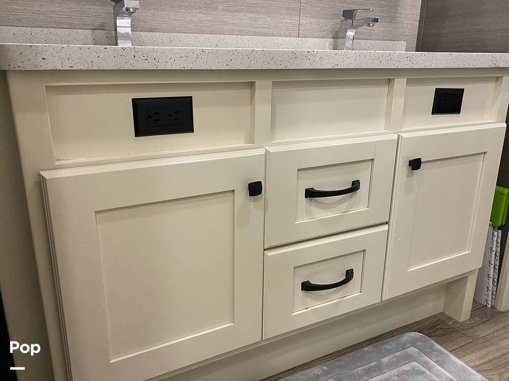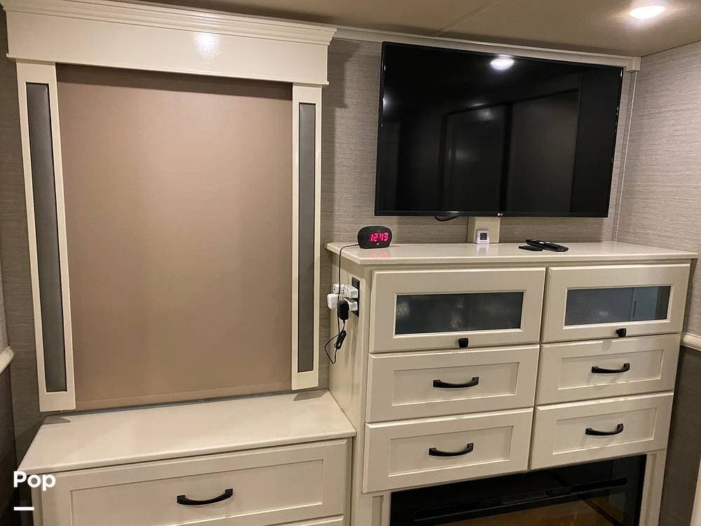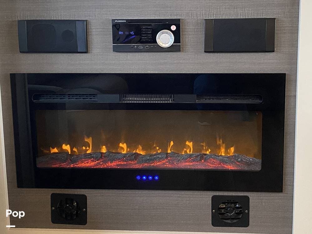 This RV is spacious and comfortable, with four slides with slide awnings and two power awnings. You'll never have to worry about extreme weather conditions as the RV comes with three 15,000 BTU AC units, including a Heat Pump, offering a whopping 45,000 BTU of cooling power. The RV also has a fully enclosed, heated underbelly with heat return and 12V Electric Tank Heaters, making it a four-season RV.
