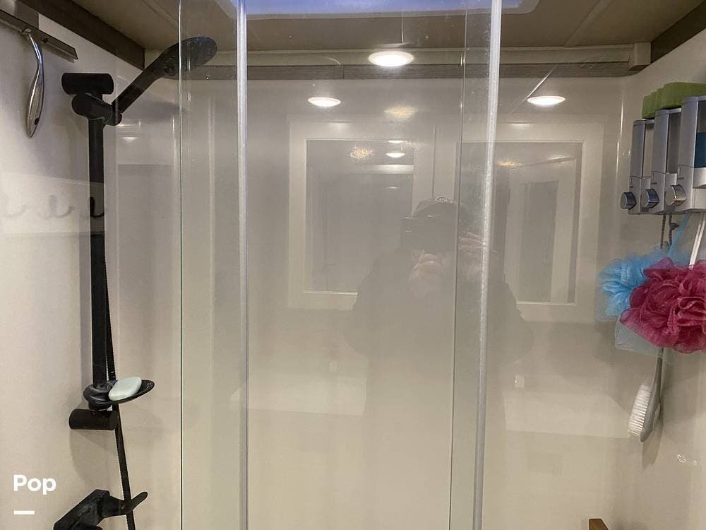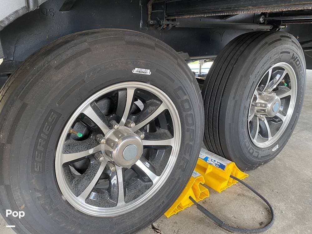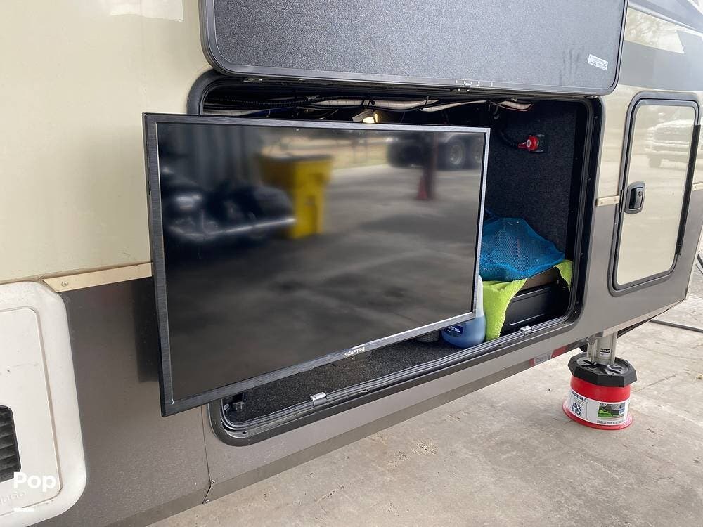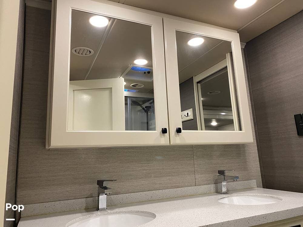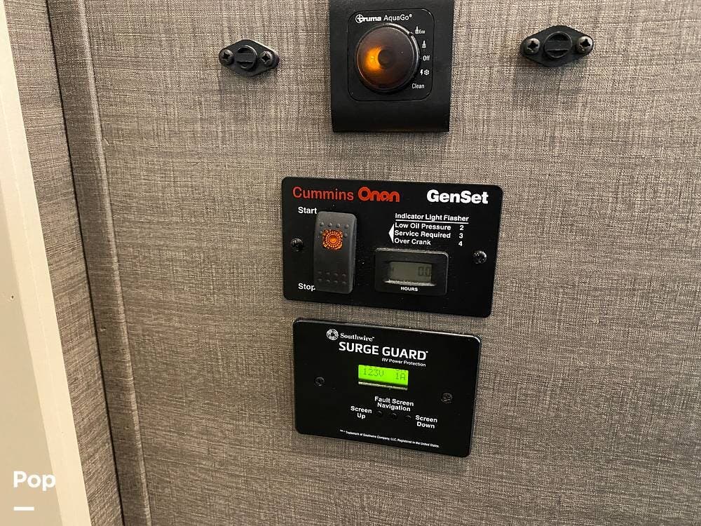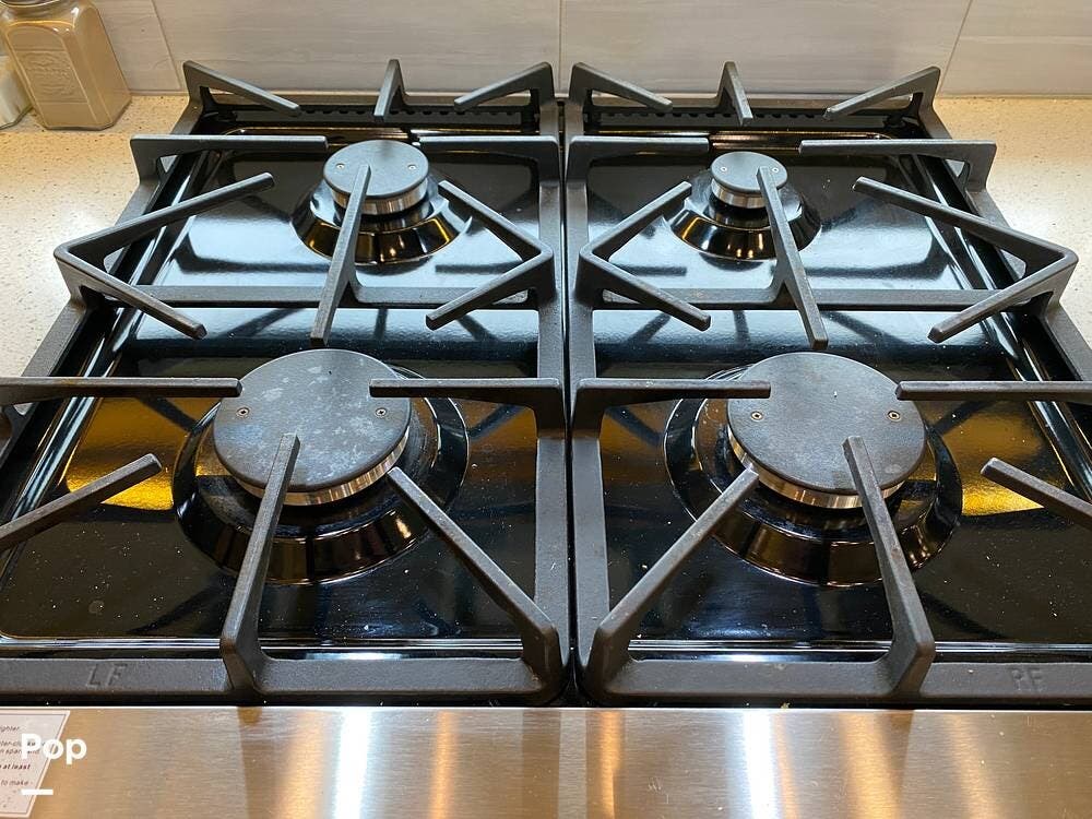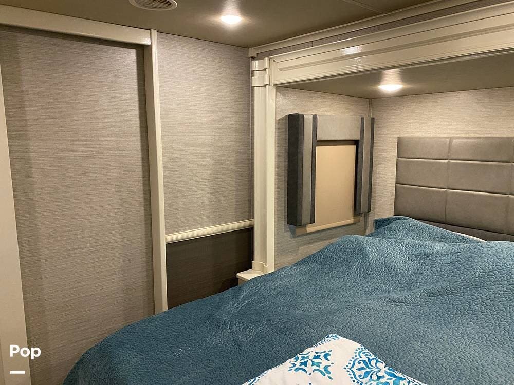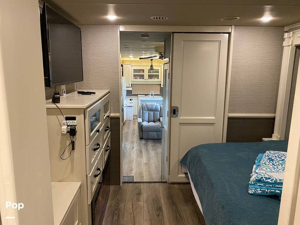 This RV is spacious and comfortable, with four slides with slide awnings and two power awnings. You'll never have to worry about extreme weather conditions as the RV comes with three 15,000 BTU AC units, including a Heat Pump, offering a whopping 45,000 BTU of cooling power. The RV also has a fully enclosed, heated underbelly with heat return and 12V Electric Tank Heaters, making it a four-season RV.