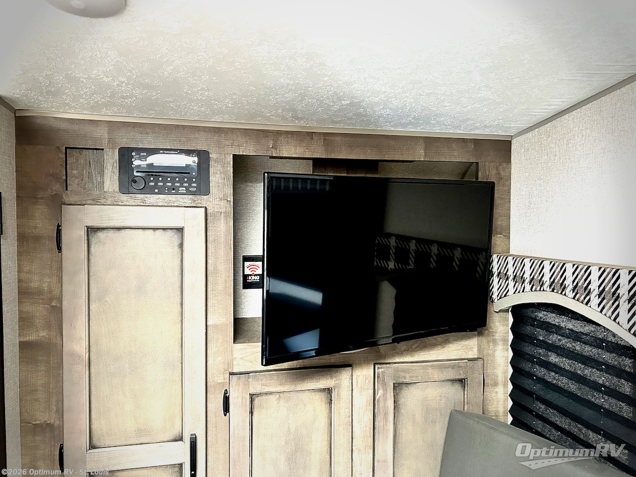 Cook, relax, sleep, and do it all again after your hike, play games and visit with other RVers! This trailer is perfect for a quick trip or a long vacation with sleeping space for three to four when you utilize the booth dinette. There is a 60" x 75" bed up front for two to easily fall asleep and includes a side wardrobe and overhead cabinet for your belongings. In the morning, the cook can use the two burner cooktop and convection microwave to whip up breakfast for you to enjoy under the 12' power awning after grabbing your camping chairs from the pass-through storage that has a motion-activated light which is helpful in the dark. You will also appreciate the full bathroom amenities, the pantry for your goodies and the entertainment center.