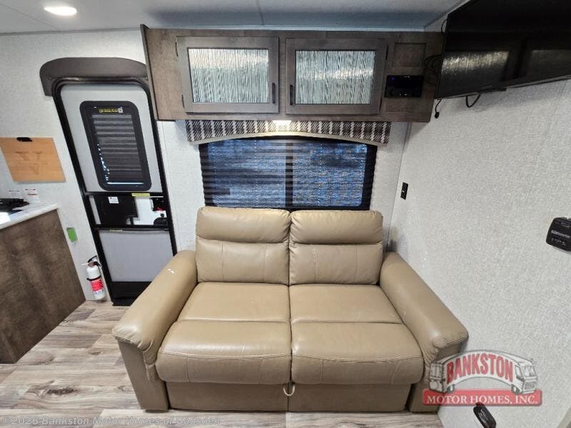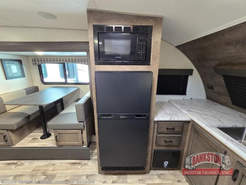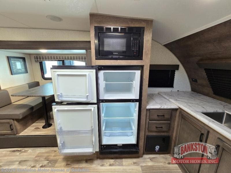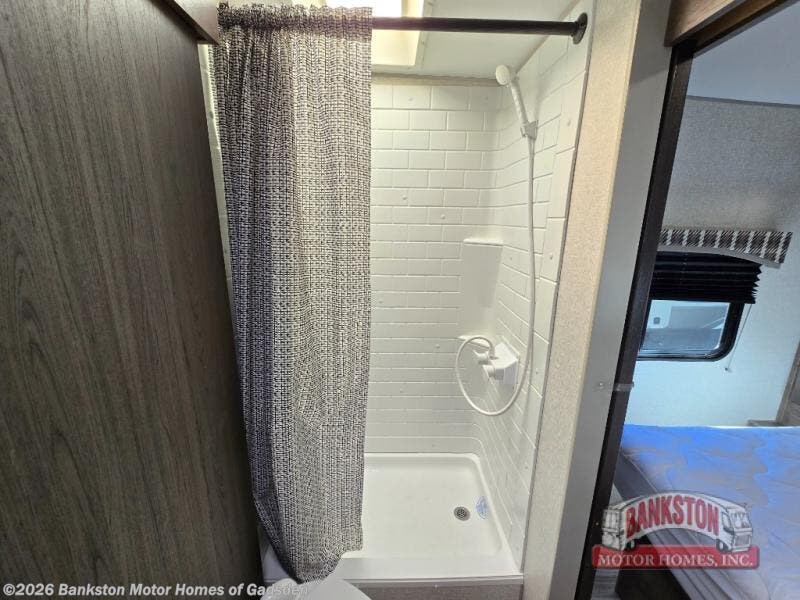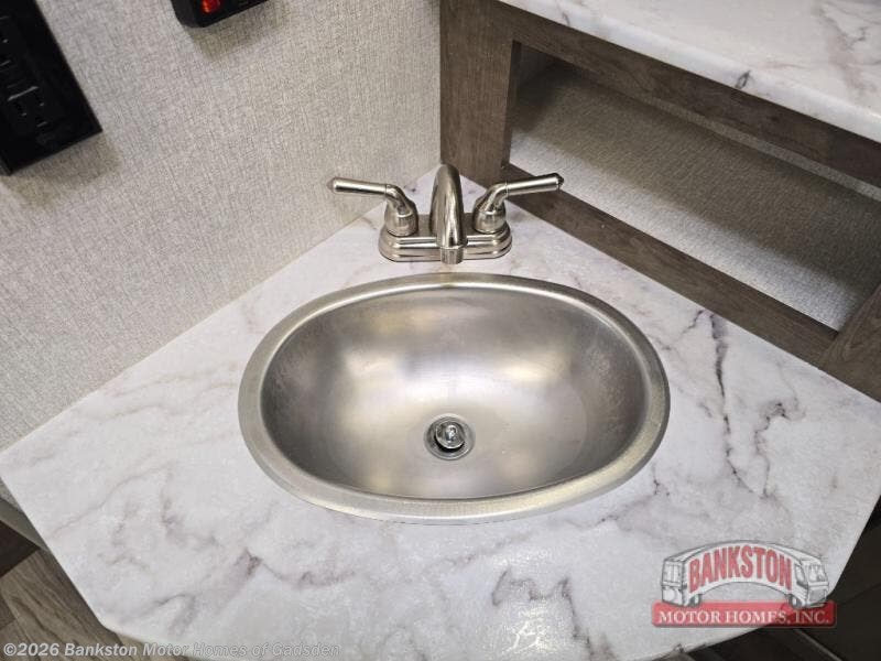 This Sonic offers a front kitchen with lots of counter space to prepare and serve meals, a large sink to easily wash the dishes, a three-burner range, an 8 cu. ft. refrigerator and a pantry to store lots of goodies, giving the cook a dream kitchen while camping! Everyone can relax on the jiffy sofa or the booth dinette slide, and both of these furnishings provide sleeping space for family and friends. The walk-through bath gives you space savings doors on each side, and everyone can take turns getting cleaned up in the 36" shower. You will have privacy in the rear bedroom while getting ready for bed, and the StorMore bedside nightstands with a 110V outlet and USB charging will come in handy to keep your battery at 100%. And the motion-activated light in the pass-through storage along the rear helps you stow away the larger camping items like chairs, tables, and fishing poles, even at night.