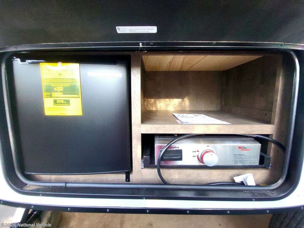 Premium Interior Package includes: Sleeps 6: Queen bed (in original plastic cover) - Two plush bunk beds - Folding dinette ( Sleeps 2) - Slide out dinette - Large windows throughout w/darkening blinds - Skylights in main area & bathroom (bathroom never used) - Motion detector lights @ door entrance & bathroom - Air conditioner - Electric/ gas hot water heater - Gas furnace - TV - RV Technologies clock/stereo radio/CD/ surround sound - Wired for King Wi Fi - Full size electric/battery refrigerator/freezer - Two burner gas stove - Microwave - Deep stainless steel sink w/formica cover - Formica counter on kitchen and bathroom sink - Storage cabinets & drawers in kitchen area - Under dinette storage w/doors - Large storage area under queen bed - Clothes closet adjacent to queen bed - Storage area above queen bed - Small table & USB port adjacent to queen bed - Easy clean dinette upholstery - Easy clean laminated woodtone flooring - Stainless steel bathroom sink - Shower, fan, & vent in bathroom - Monitor panel & hot water heater control in bathroom - Holding tank gauge - Tire pressure gauge - Smoke detector - CO detector
