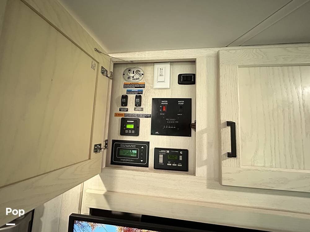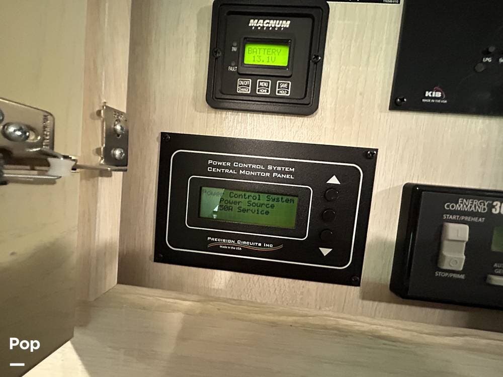 Safety and ease of use are top priorities, with comprehensive rear and side-view cameras, electronic stabilizers, and an integrated video camera system for peace of mind on the road. An Onan generator, solar panels with a controller, and a full electric awning make this RV ideal for off-grid adventures and outdoor relaxation.