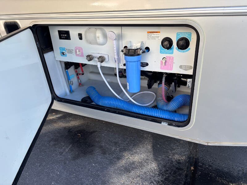 Awning, Backup Monitor, External Shower, Hitch, Ladder, Leveling Jacks, Power Awning, Slideout -