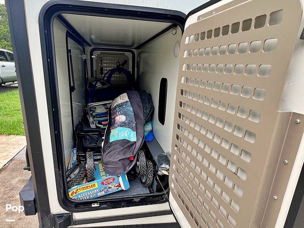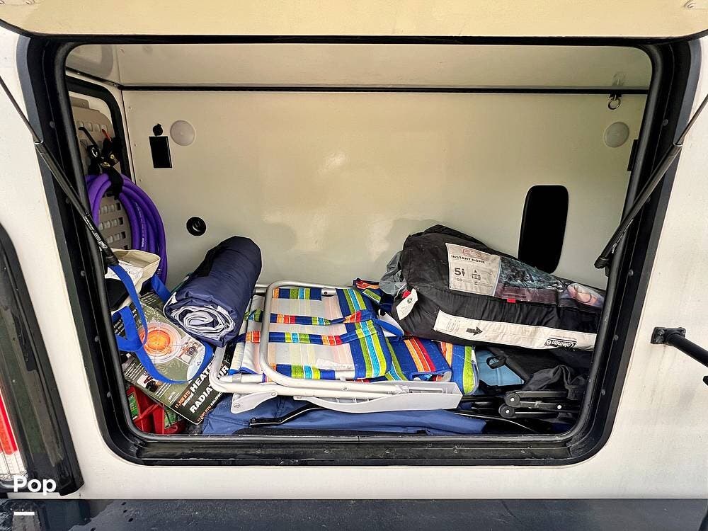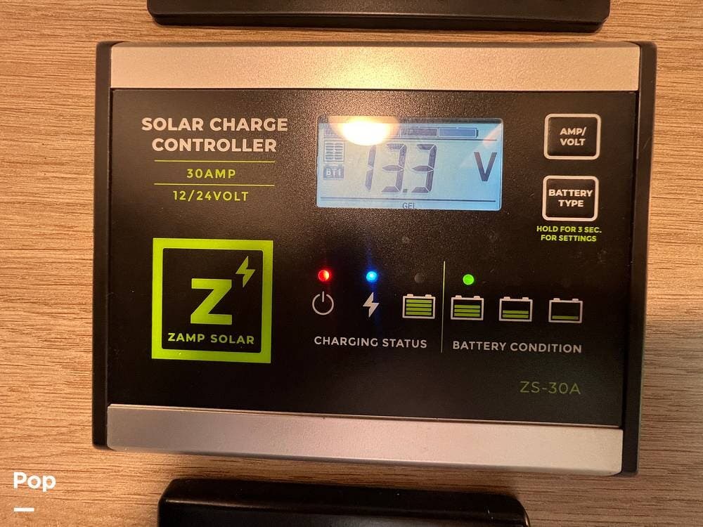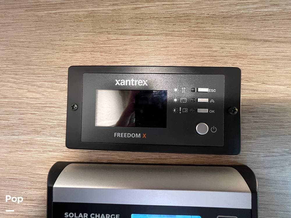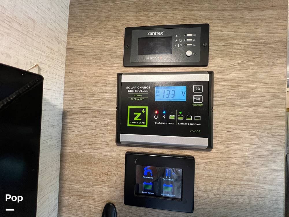 Say goodbye to noisy generators, thanks to two 320 amp-hour lithium-ion house batteries with a Bluetooth control package, a dedicated second alternator, a 2000-watt pure sine inverter, and three solar panels that ensure reliable power. Enjoy spacious storage solutions throughout, including a massive, heated rear gear garage large enough for bicycles.