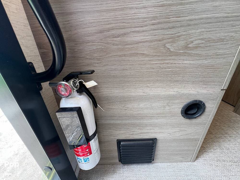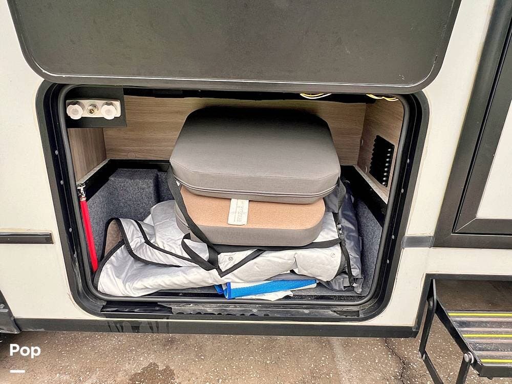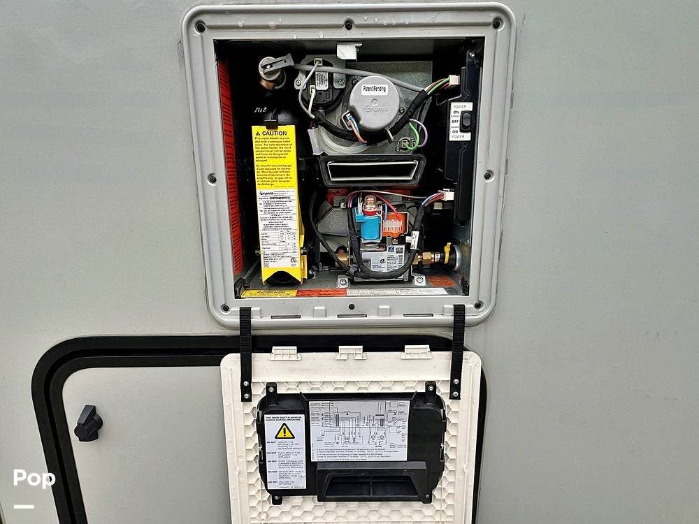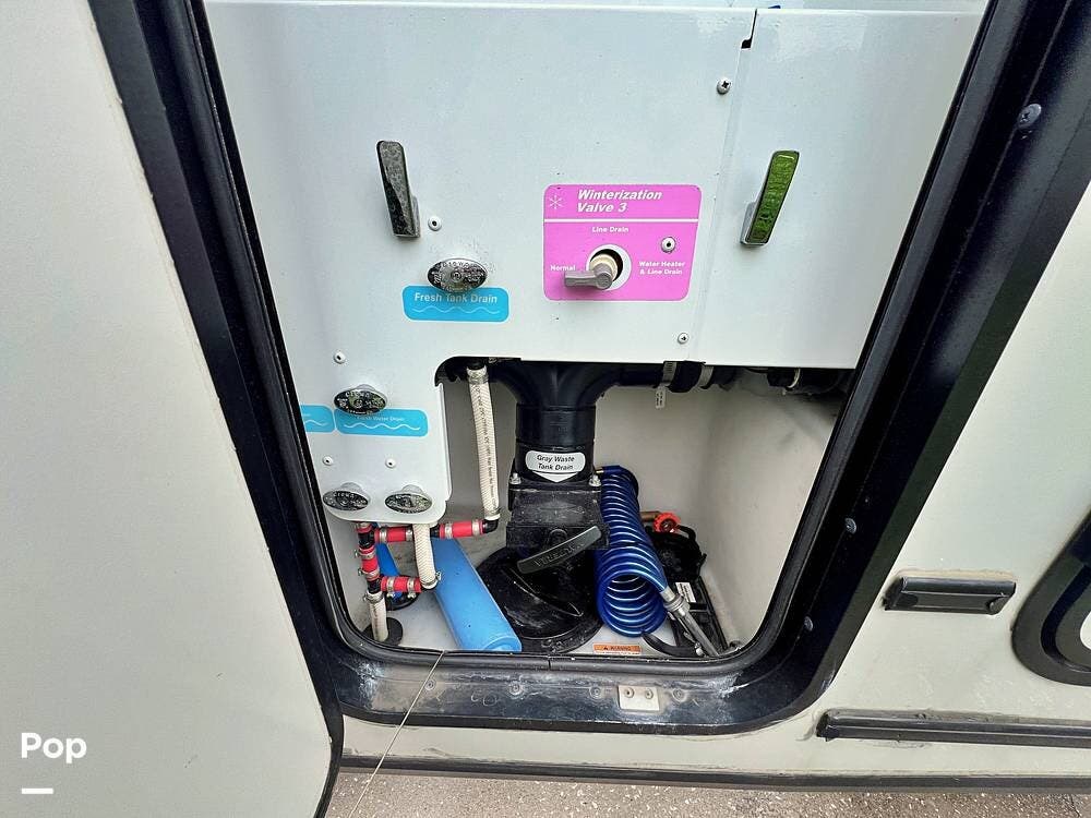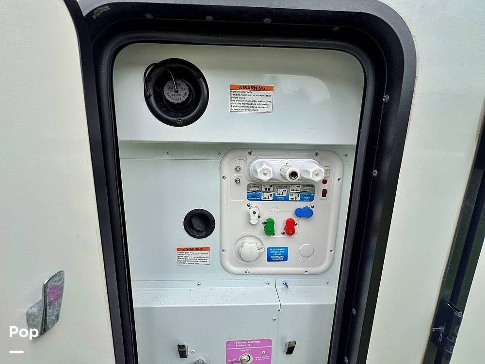 Say goodbye to noisy generators, thanks to two 320 amp-hour lithium-ion house batteries with a Bluetooth control package, a dedicated second alternator, a 2000-watt pure sine inverter, and three solar panels that ensure reliable power. Enjoy spacious storage solutions throughout, including a massive, heated rear gear garage large enough for bicycles.