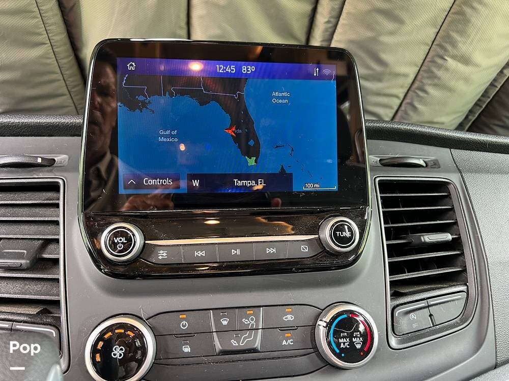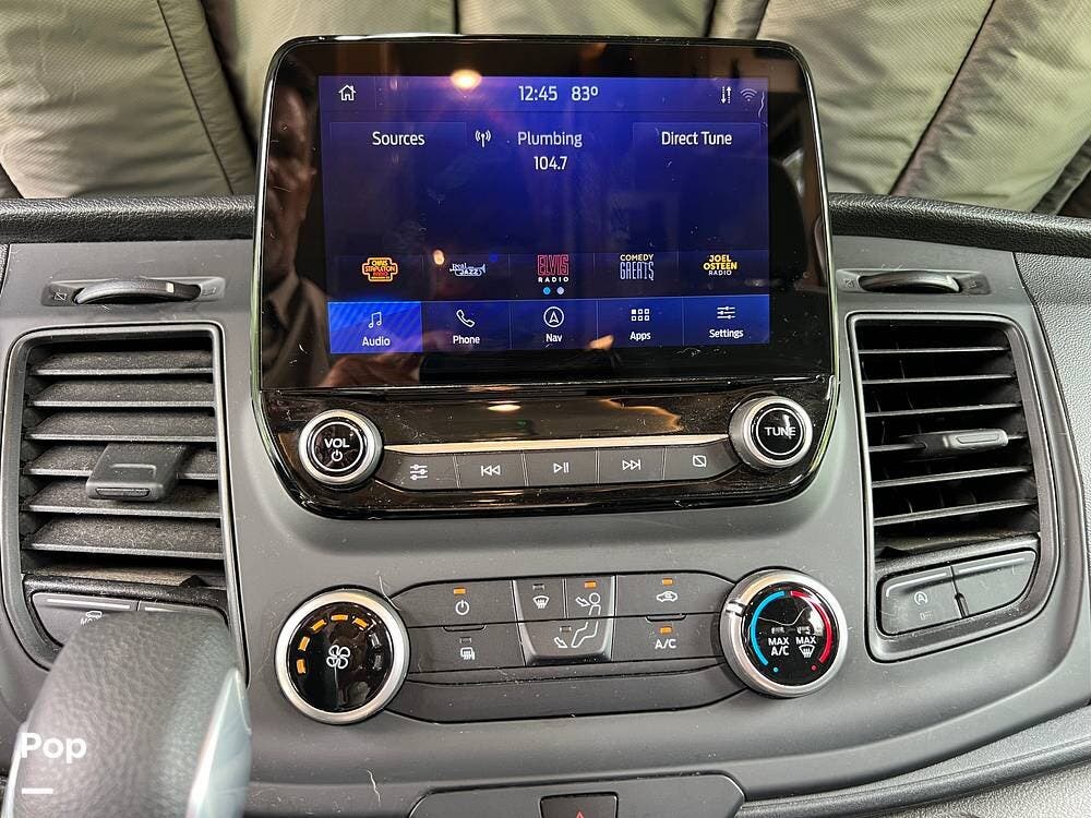 This new RV style is built on a safe Ford Transit chassis with dual rear wheels and is powered by a 310 HP 3.5L EcoBoost turbocharged engine paired with a 10-speed SelectShift transmission. The cab compartment is designed for comfort, featuring a large 8" touchscreen radio/rear monitor display with navigation, Bluetooth, Sirius, and compatibility with Apple CarPlay and Android devices.