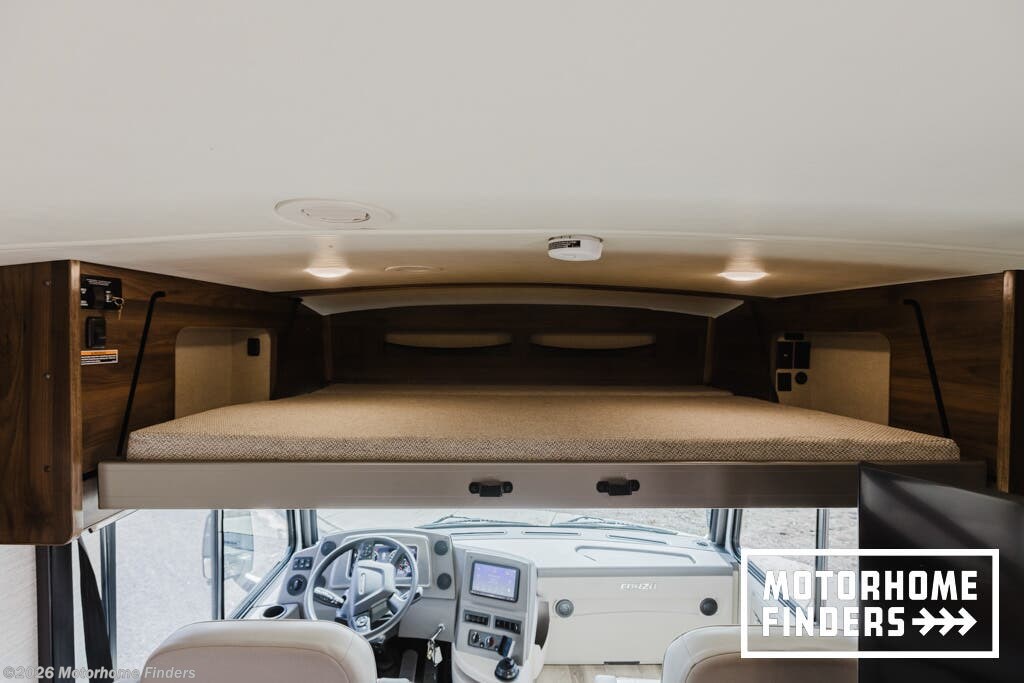 Studio loft bed over the cab – Dedicated overhead sleeping area that keeps the main living space open.