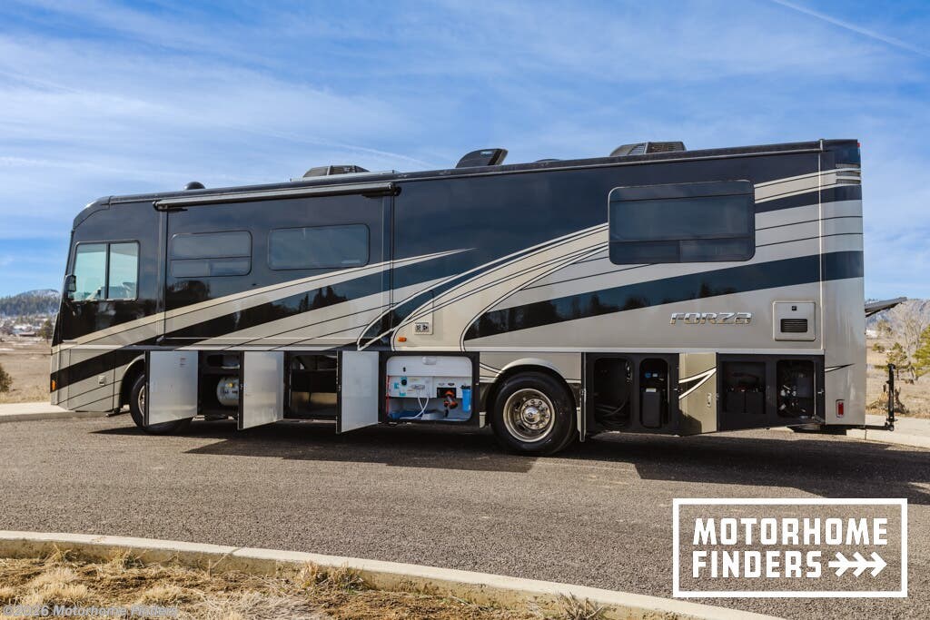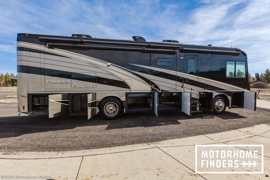 This 2022 Forza 34T delivers an outstanding blend of diesel performance, family-friendly sleeping capacity, and upscale residential amenities in a highly usable 34-foot floorplan. Designed for long-distance comfort and extended stays, it offers premium cockpit technology, true pass-through storage, and multiple sleeping zones—making it ideal for couples, families, or guests on the road.
