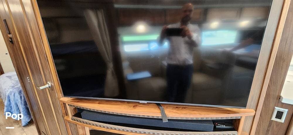 Outside, the exterior TV makes it easy to enjoy movie nights under the stars, while the high-end interior entertainment system keeps you connected wherever you go.