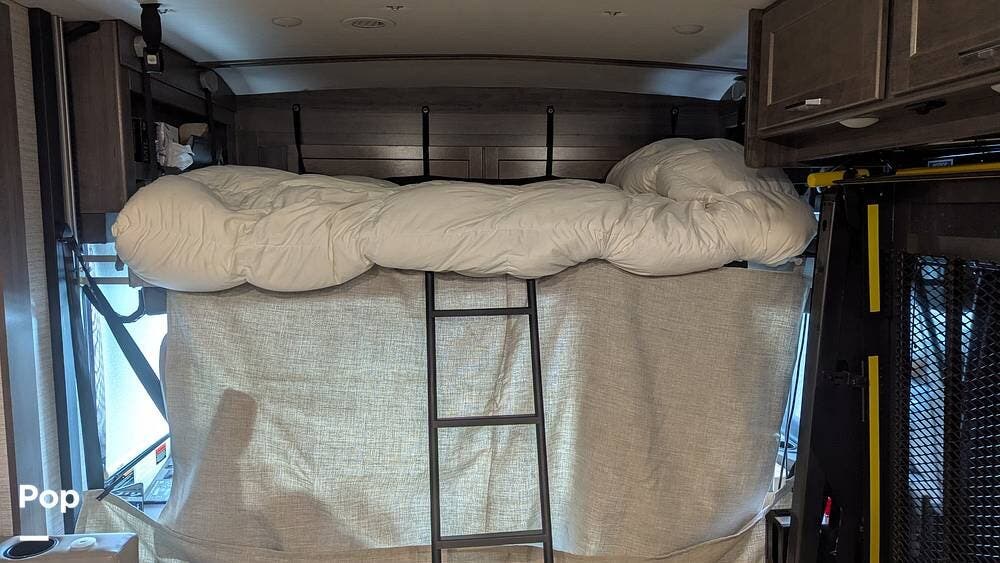 Sleeping options include a cab-over drop-down bed and a rear queen bed with dual Sleep Number options, with easy access.