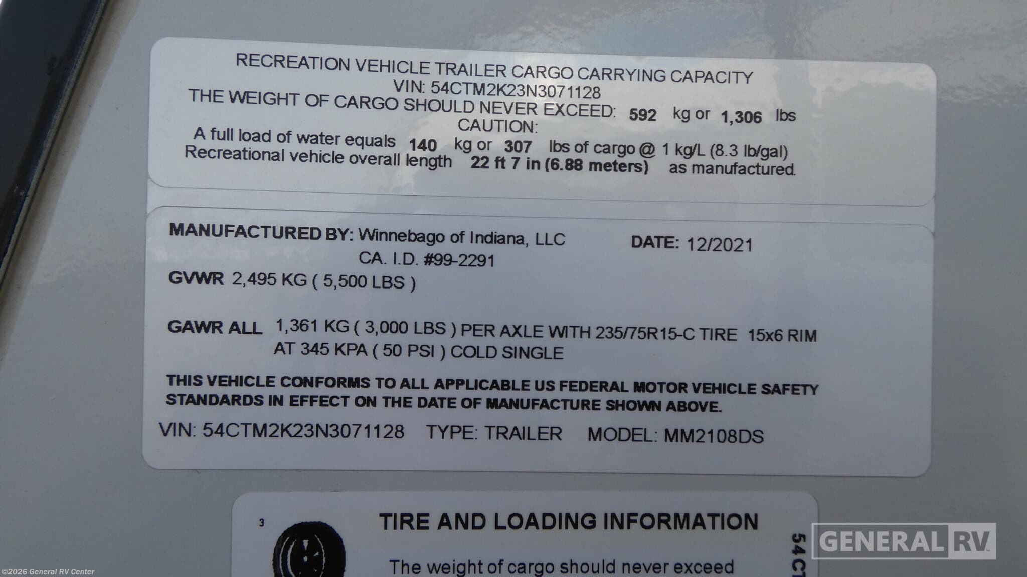 Request More Info on this 2022 Winnebago Micro Minnie 2108DS Offered for sale by General RV Center