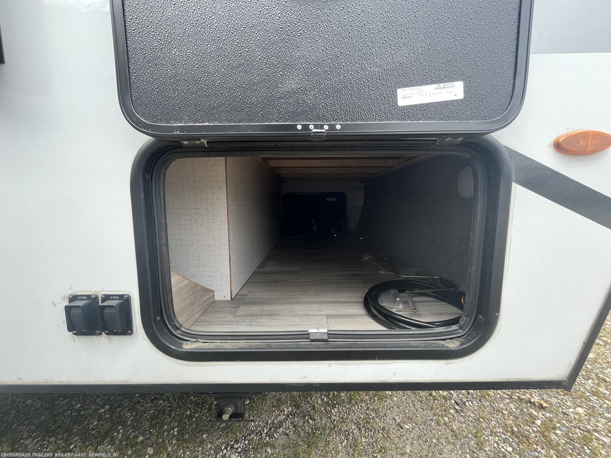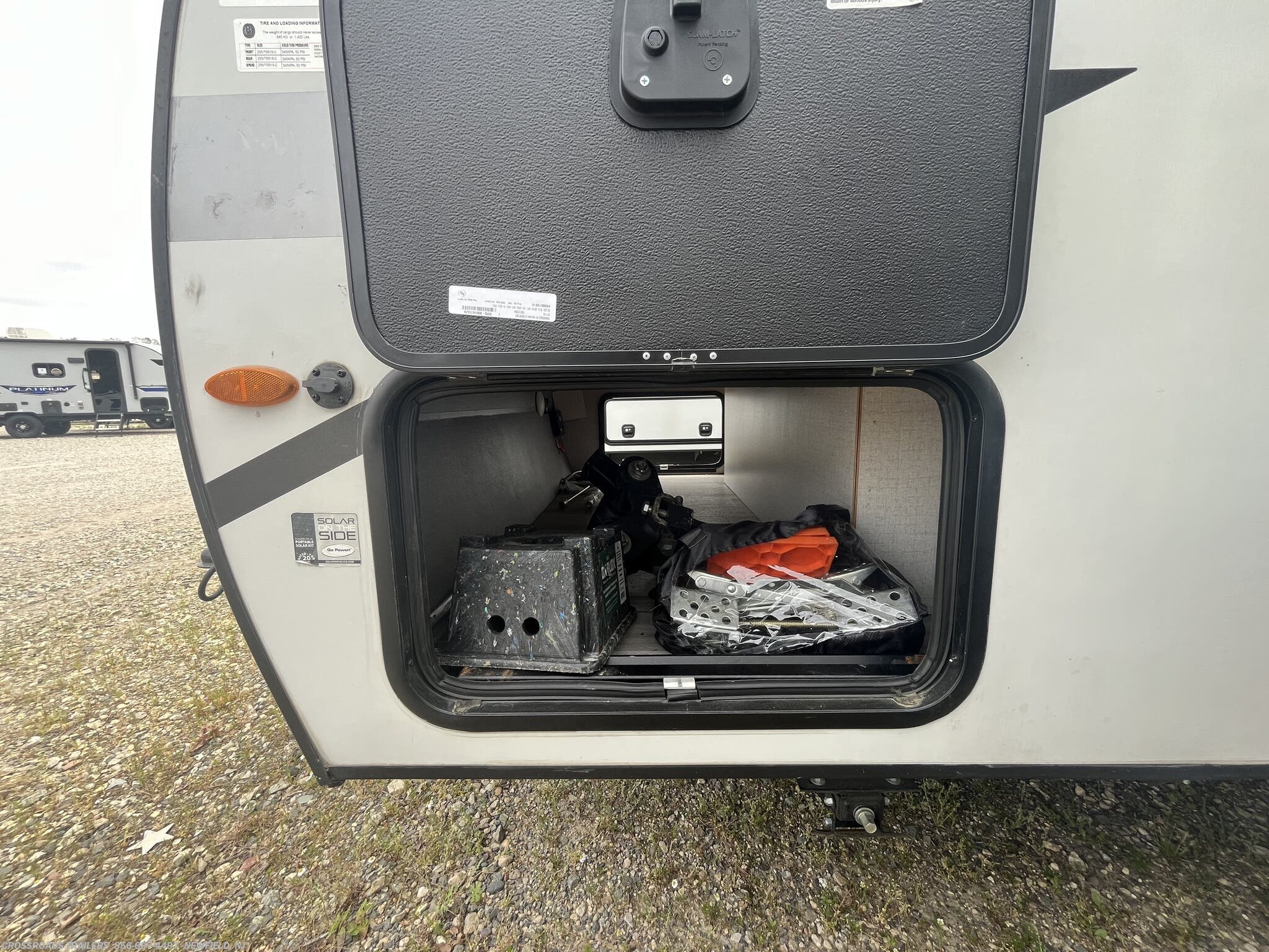 Awning, Exterior Speakers, External Shower, Hitch, Ladder, Leveling Jacks, Luggage Rack, Power Roof Vent, Skylight, Slideout, Spare Tire Kit -