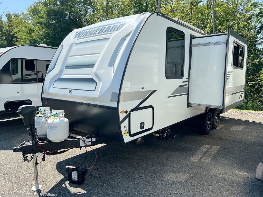 Start out on your boundless journey in one of these Winnebago Industries Towables Micro Minnie travel trailers! Towing is made simple with the 7' width to keep your Micro Minnie in your rear-view mirror. They don't lack in features either although they are compact in size. The spacious galley including a sink, refrigerator, two burner cooktop, and even a microwave oven allows you to cook without compromise. You will not only enjoy the entertainment found indoors with an LED TV, a JBL premium sound system and Aura Cube high performance mechless media center, but outdoors you will also enjoy the JBL premium speakers and a power awning with LED lighting. Each model also comes with flexible exterior storage to make packing quick and easy. What are you waiting for, come choose your model today!